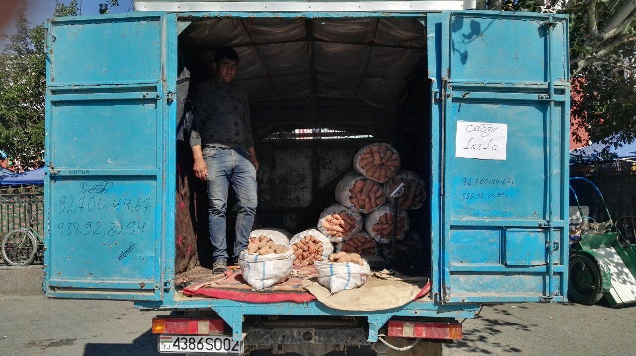 Тавре мушоҳида кардем, баъд аз нисфирӯзӣ дар майдони Регистон як воситаи нақлиёт ба назар мерасид, ки нархи як кило сабзӣ дар он 1 сомонӣ буд. Ба иттилои масъулин, як мошин картошка ҳам мавҷуд буд, ки ҳар килояшро бо нархи 5,5 сомонӣ савдо мекард.