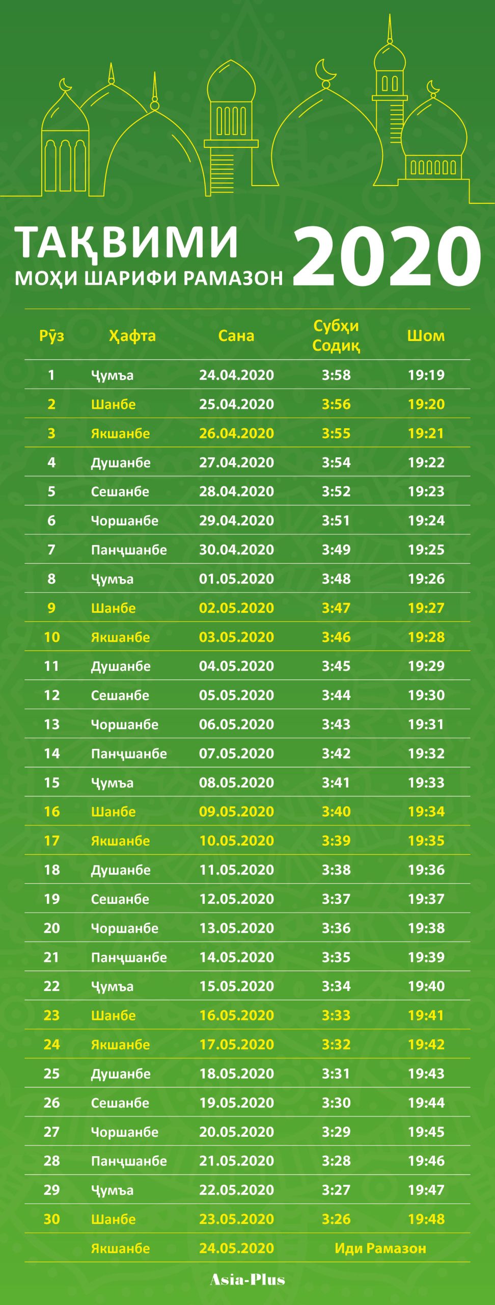 Бароятон тақвими моҳи шарифи Рамазони имсоларо пешкаш мекунем.