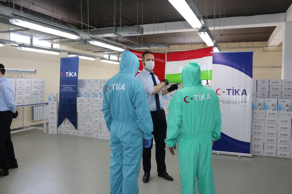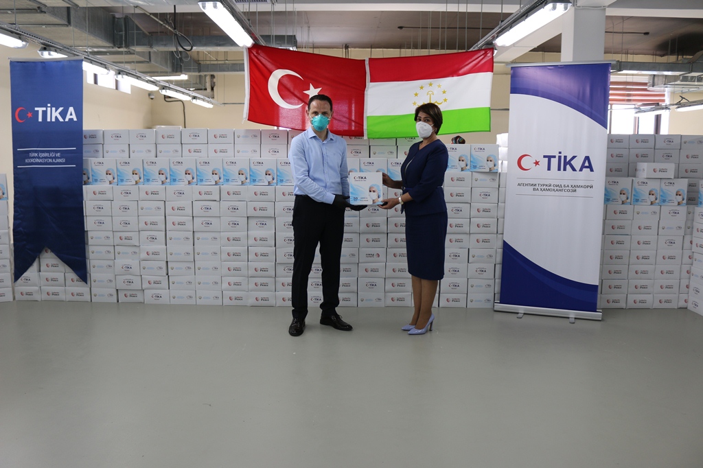 Ҷиҳати мубориза бо хуруҷи КОВИД-19 дар чаҳорчӯбаи кӯмакҳои тиббии ба кишварҳои дӯсту бародари Туркия равонагардида тибқи дархости Вазорати тандурустӣ ва ҳифзи иҷтимоии аҳолии Тоҷикистон 70.000 адад ниқоби муҳофизатӣ ва 1.000 адад либоси муҳофизатӣ бо мақсади тақсим намудан ба шахсони гурӯҳи зери хавф қарордошта, пеш аз ҳама ба кормандони тандурустӣ, бо баргузории як маросим супорида шуданд.