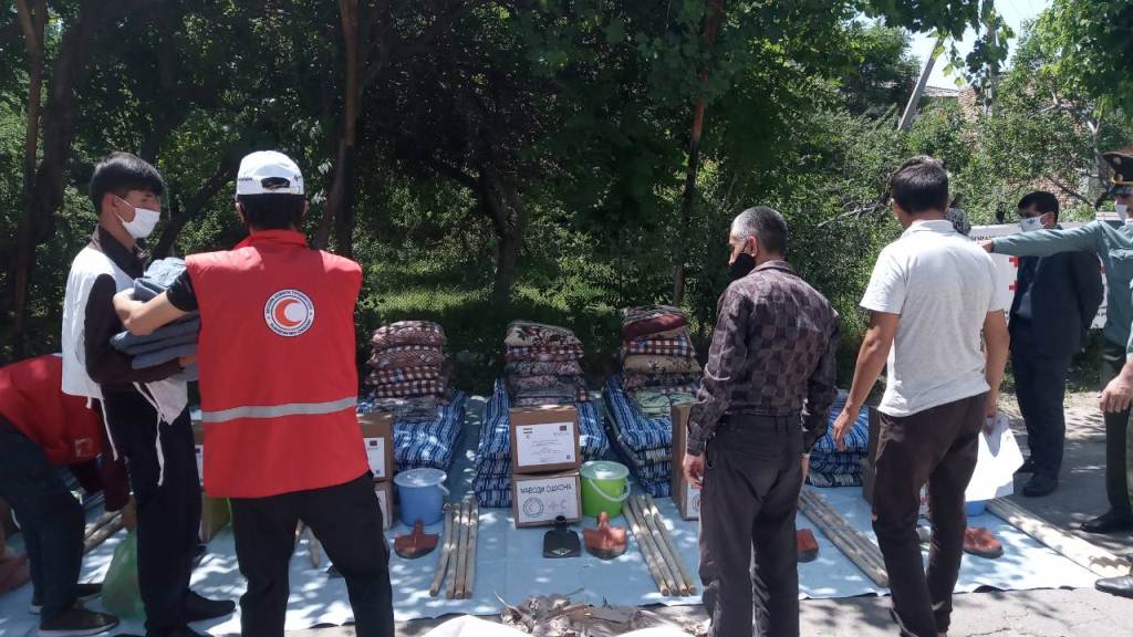 Дар натиҷа лоиҳаи Бунёди вижаи вокуниш ба ҳолатҳои фавқулодаи Федератсияи байналмилалии Ҷамъиятҳои Салиби Сурх ва Ҳилоли Аҳмар (DREF) тасдиқ гардид ва маблағҳои ҷудогардида аз ин Бунёд ва қисман аз захираҳои дохилии ҶҲАТ барои дастрас намудани маводҳои ғайрихӯрока ба 338 оилаҳои осебдидаи ноҳияи Хуросон ва 6 оилањои осебдидаи шањри Ваҳдат, яъне дар маҷмӯъ ба 344 оила пешбинӣ гаштанд.