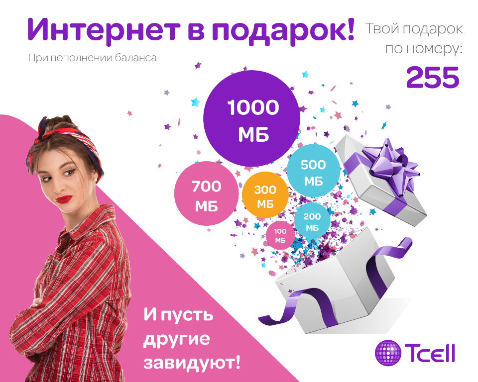 Ширкати Tcell иқдоми «Интернет- ҳамчун тӯҳфа» -ро эълон менамояд, ки дар он муштариёни ширкат ҳангоми пур кардани тавозунашон бастаи Интернети мобилиро ҳамчун тӯҳфа мегиранд. Ҳар қадар, ки маблағи пуркарда зиёд бошад, ҳамон қадар бастаи Интернети тӯҳфа бештар мешавад!