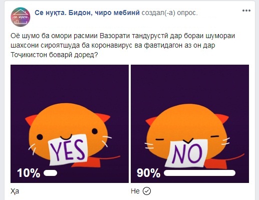 Аз сабаби он ки ҳар корбар ин ҷо метавонад аз ҳолати фавт хабар диҳад ва муҳаррирони сомона наметавонанд дурустии ҳар як далелро санҷанд, ин омор низ дақиқ нест. Ҳамин тавр дар бораи вазъияти кишвар вобаста ба паҳншавии коронавирус дар Тоҷикистон маълумоти кофию мӯътамаде ва омори дақиқе нест, ки шубҳаҳои хонандагонро аз байн барад.