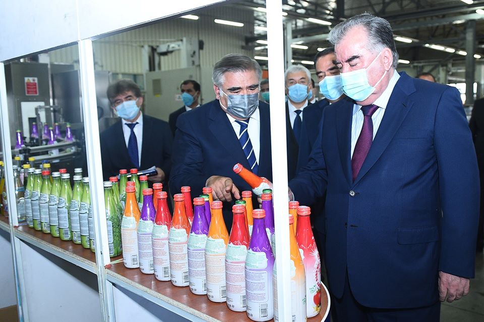 Бино ба иттилои хадамоти матбути сарвари давлат, дар ин ҷо ӯ ду хати нави технологии истеҳсоли нӯшокиҳои ташнашикан, афшураву шарбат ва ғизои кӯдакона бо шаҳду шарбатҳо ва мураббои мевагиро боз кард.