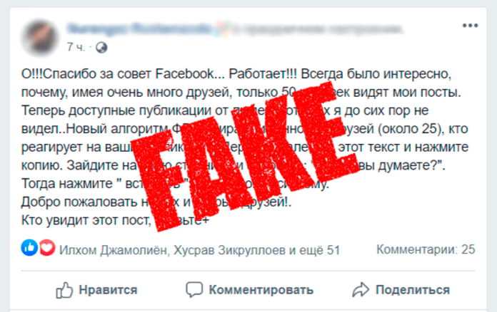 – Ҳанӯз моҳи декабри соли 2017, овозаҳо дар бораи алгоритми нави Facebook шумораи дӯстонеро, ки паёми онҳо дар сатри навигариҳои корбарон пайдо мешаванд, маҳдуд мегарданд, бори аввал паҳн шуда буд,– менависад Snopes.