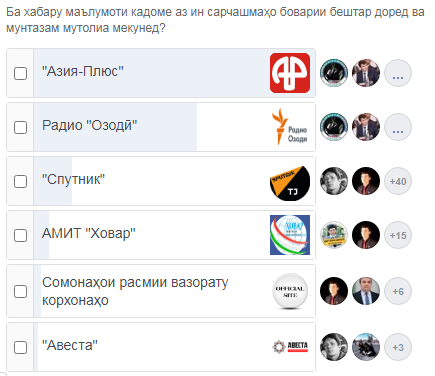 овоз доданд. Аз ин бар меояд, ки корбарони Facebook “Asia-Plus”-ро ҳамчун сарчашмаи боэътимодтарин интихоб намудаанд.
