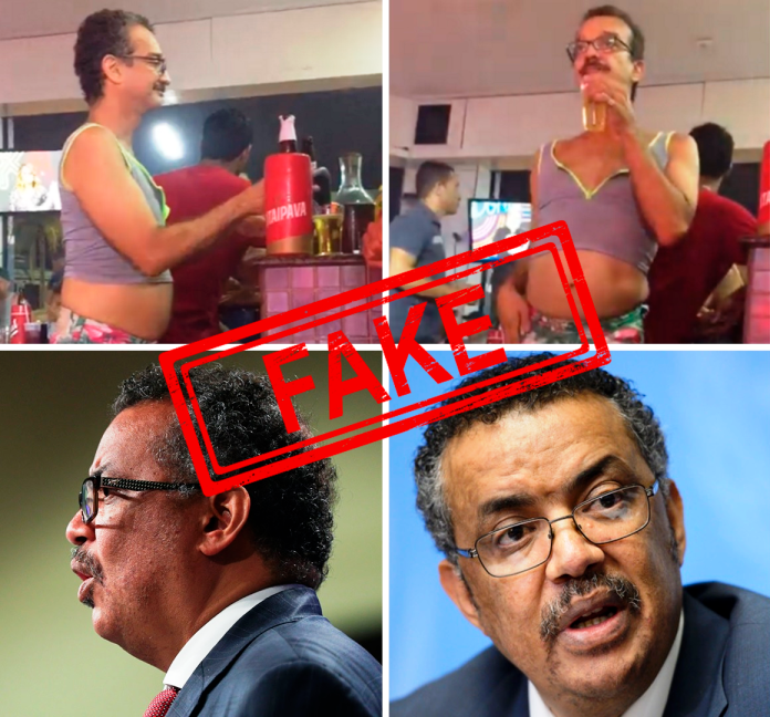 Тайи чанд рӯзи ахир дар шабакаҳои иҷтимоӣ, хоса дар бахши арабии Twitter наворе паҳн мешавад (бойгонӣ), ки гӯиё дар он роҳбари Созмони ҷаҳонии тандурустӣ (СҶТ) Тедрос Адханом Гебрейесус дар як клуби шабона бо либосҳои кӯтоҳи рангоранг рақс мекунад. Баъдан, ин навор дар шабакаи иҷтимоии Facebook низ роҳ ёфт (бойгонӣ).