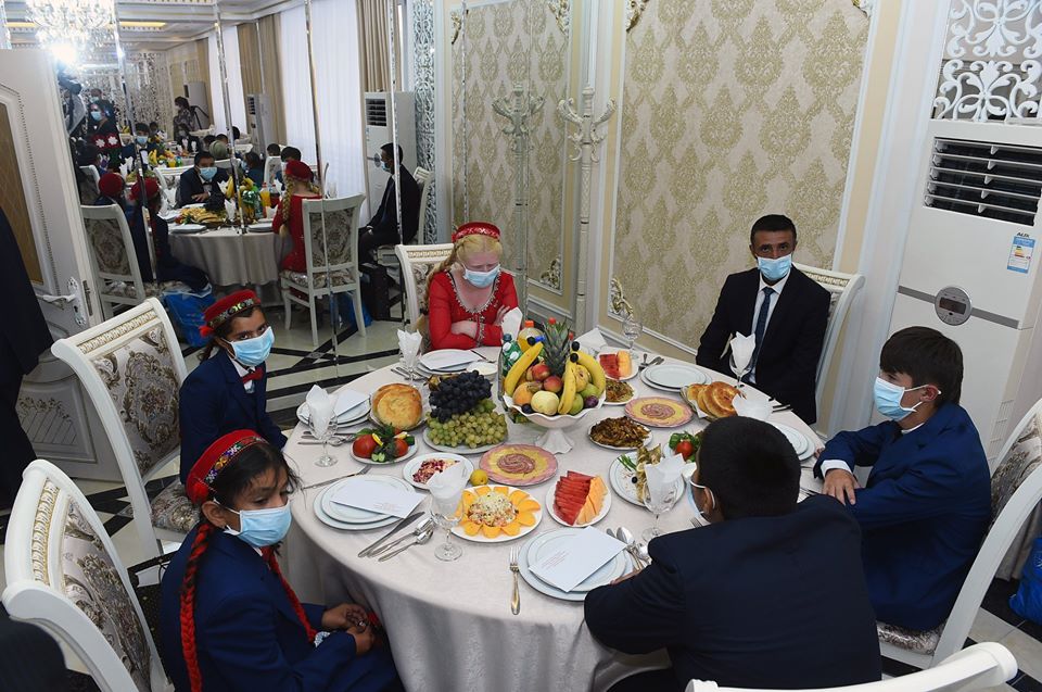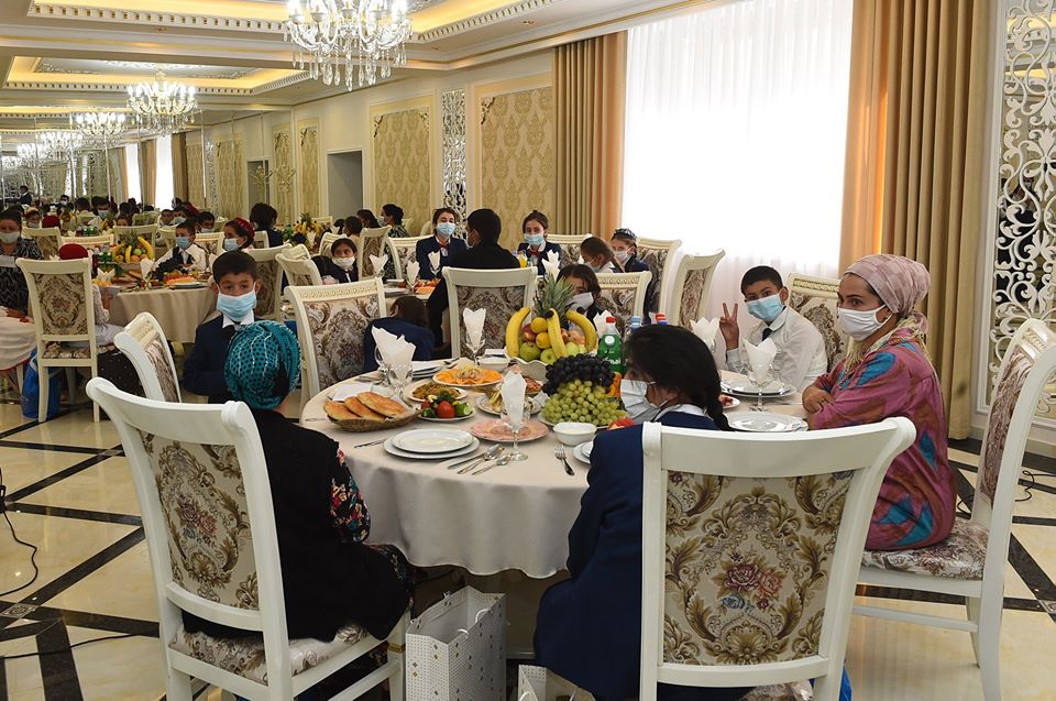 Сарвари бо 55 нафар ятими кулл ва маъюб, ки тарбиятгирандагони муассисаҳои таълимии ноҳияҳои Дарвоз, Ванҷ ва Рӯшони ВМКБ мебошанд, мулоқот намуда, ба онҳо туҳфаҳои арзишманд тақдим карданд.
