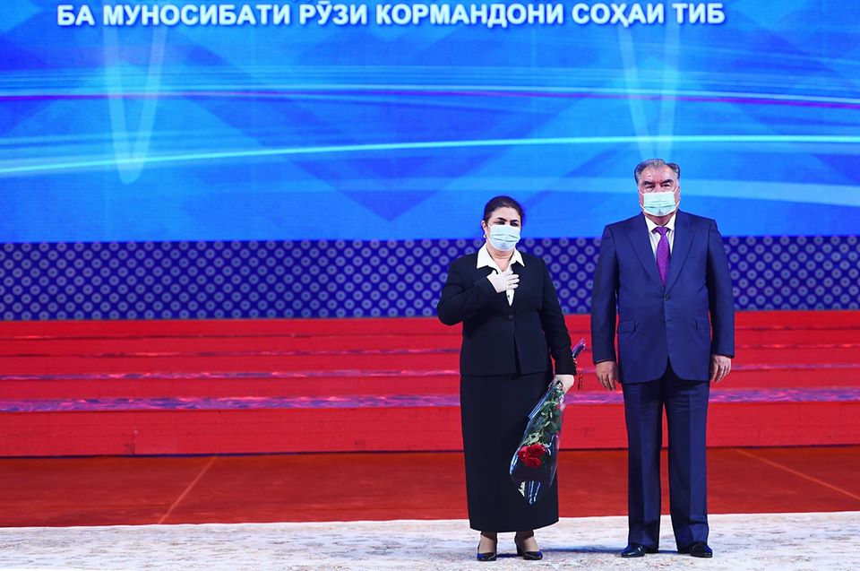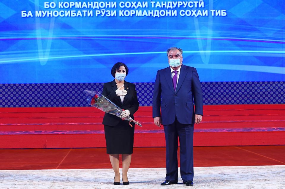 Президенти Тоҷикистон Эмомалӣ Раҳмон дар Рӯзи иди касбии кормандони соҳаи тандурустӣ барои хизматҳои шоиста бар нафъи давлату нафаронеро, ки дар рӯзҳои душвори паҳншавии пандемияи короновирус ба касби худ садоқат нишон доданд, бо мукофотҳои давлатӣ сарфароз гардонид.