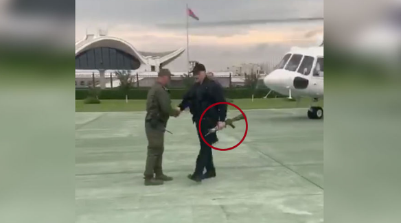 Бино ба иттилои Бахши хабарии Осиёи Марказӣ бо истинод аб хадамоти матбуоти президенти Беларус, ӯ дар даст силоҳ ва дар тан ҷавшан ё либоси тирногузар дошт. Лукашенкоро писари понздаҳсолааш Николай ҳамроҳӣ мекард.