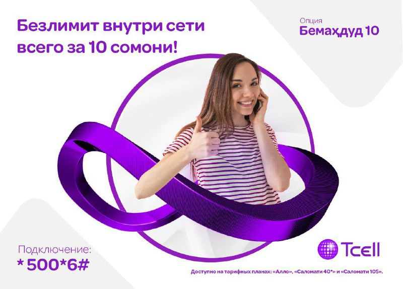 Оператори пешсаф ва навовари кишвар –ширкати Tcell ба муштариёне, ки бештар занг мезананд, опсияи ҷадиди "Бемаҳдуд"-ро пешниҳод менамояд.