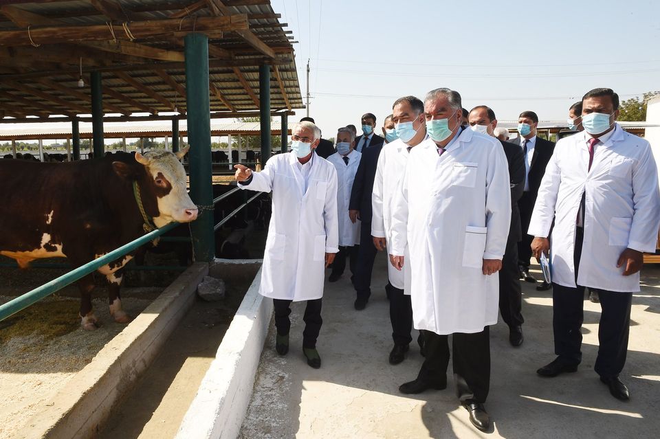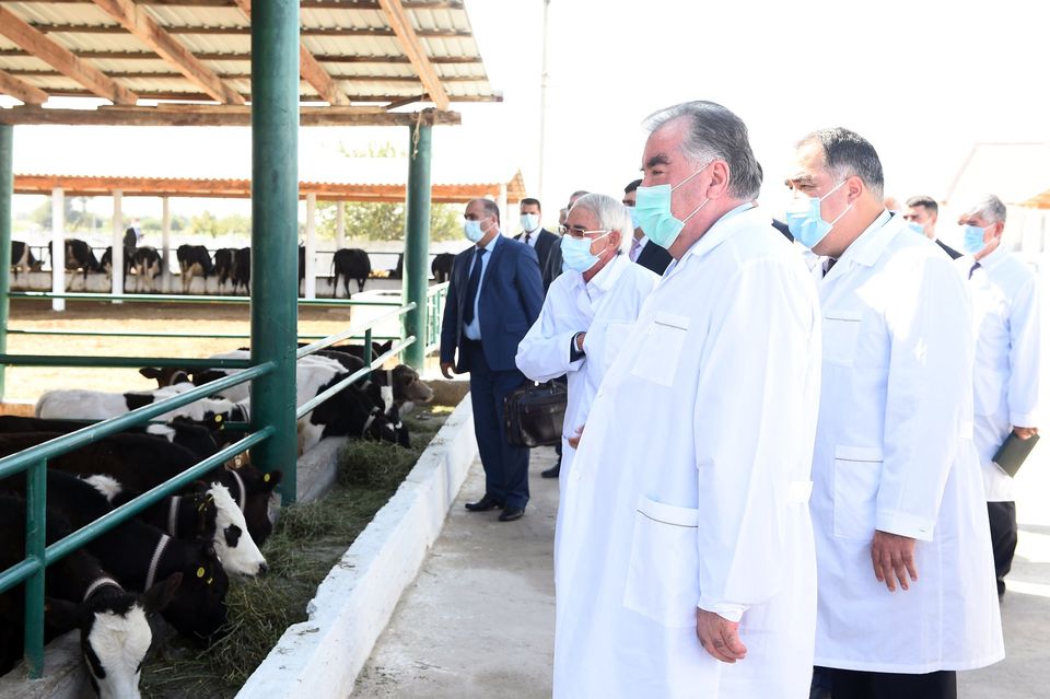 Дар деҳаи Фотеҳобод президентаз фермаи ширию молии Кооперативи истеҳсолии “Олимиён” боздид намуд. Дар ин ҷо беш аз 200 сар чорвои калони шохдор, 560 сар моли майда, 25 сар асп, 6 шутур, 12 шутурмурғ ва 10 ҳазор сар мурғи гуштӣ парвариш карда мешавад.