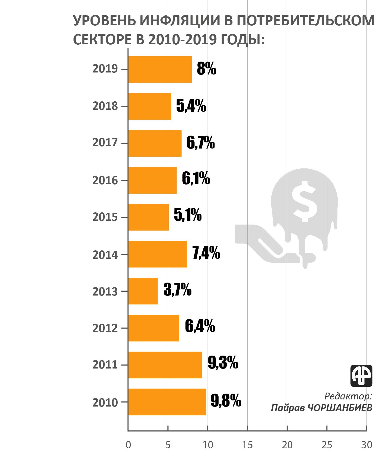 Ҳукумат ният дорад, ки соли равон мизони таваррумро дар бахши истеъмолӣ дар сатҳи 7% нигоҳ дорад. Соли 2019 сатҳи таваррум 8%-ро ташкил дод.