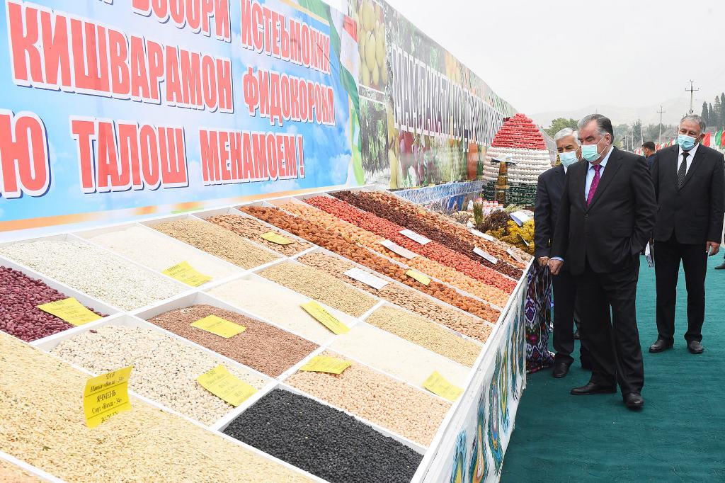 Дар ҳамин ҷо президенти Тоҷикистон аз намоиши дастовардҳои кишоварзони ноҳия дидан кард. Дар намоишгоҳ хоҷагидорони ноҳия иштирок намуда, маҳсули меҳнати хеш, аз қабили ҳосили зироати ғалладонагӣ, сабзавот, полезӣ, картошка, зироати техникӣ ва ғайраро, ки давоми сол бо меҳнати ҳалол ба даст овардаанд, ба тамошо гузоштанд.