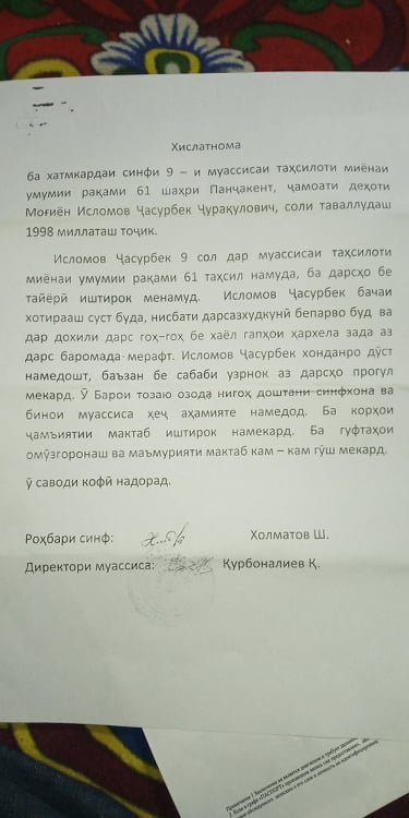 “Писари ман фаҳмишаш суст мебошад ва дар қайди беморхона меистад. Чи хел дидаю дониста ӯро ба хизмат буданд, ман ҳайрон. Ҳатто аз мактабе, ки Часурбек таҳсил кард, хислатнома овардам, ки ба писарам хислатномаи хуб надодаанд. Аммо бо ин вуҷуд дар комиссариати ҳарбӣ онро ба инобат нагирифтанд”, – мегӯяд падари Ҷасурбек.
