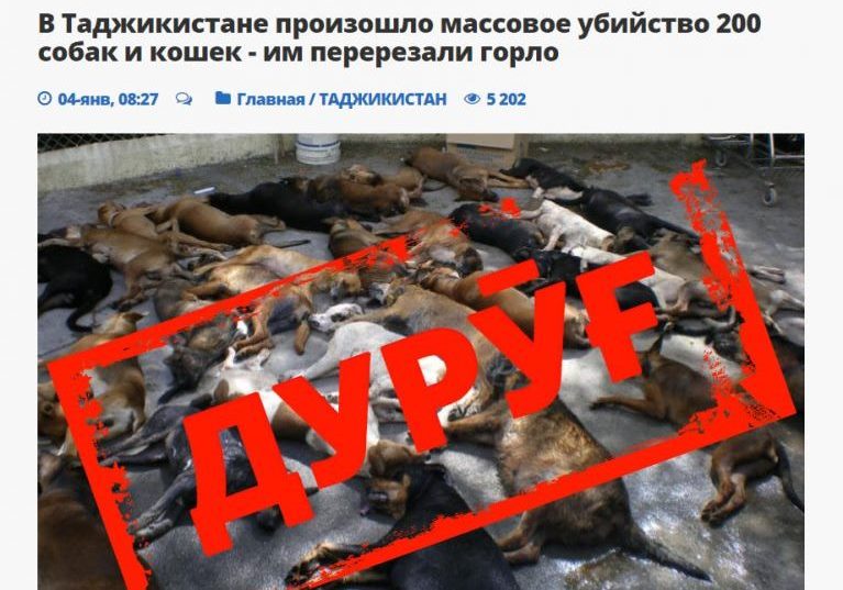 Дар наиҷаи далелсанҷӣ муайян гардид, ки куштори 200 сар сагу гурбаҳо аслан моҳи марти соли 2020 дар Якутск рух додааст ва онҳоро гӯиё бо гумони дар алоқа будан бо ҳайвоноти ҳорӣ (девона) куштаанд. Вале сомонаи «Asia Times», ки 4-уми январи соли 2021 бо нашри ин хабар макони рухдоди онро ба Тоҷикистон рабт додааст, «Дурӯғ» мебошад.