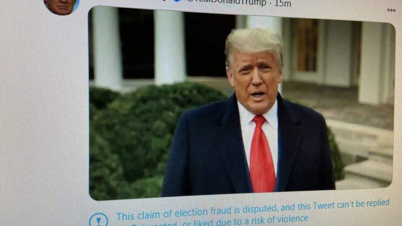 Доналд Трамп баъди муддати кутоҳе бо як муроҷиати видеоӣ дар Твиттер дигарбора иддаои беасосаш дар бораи тақаллуб дар интихоботро такрор карда гуфт, ки тарафдоронаш “ба хона раванд.”