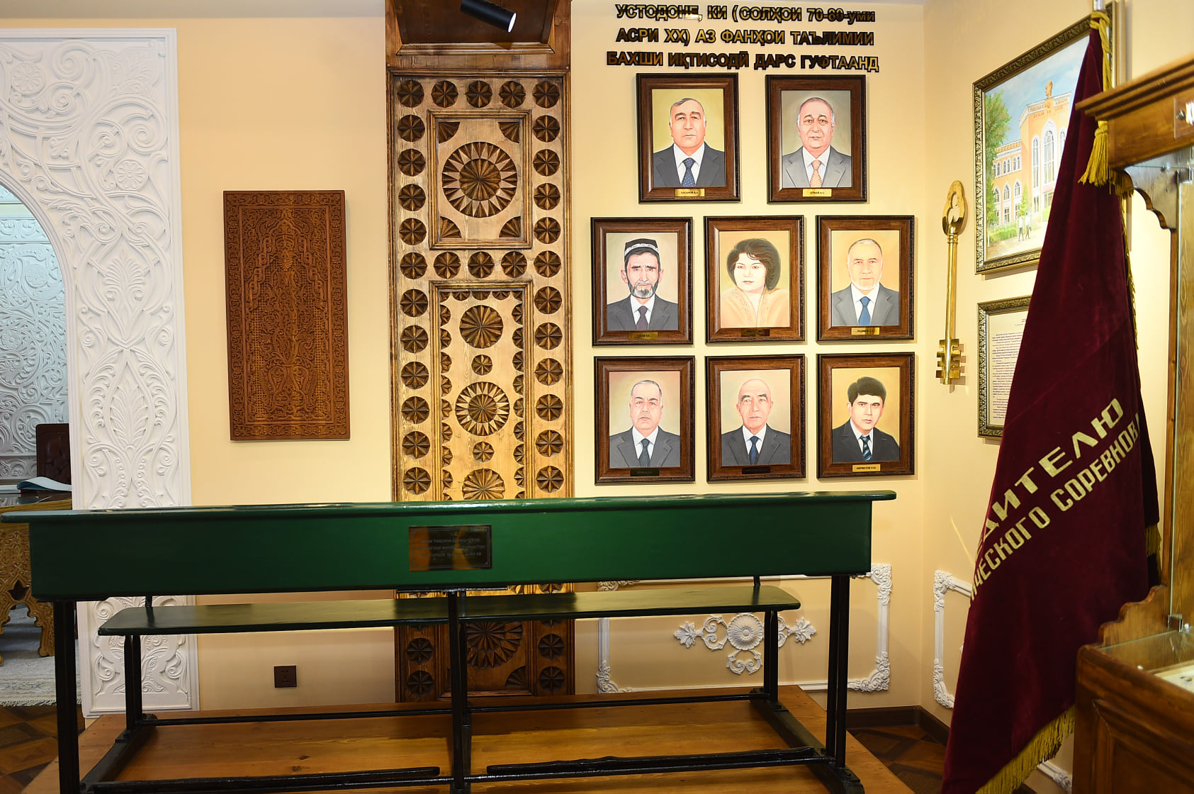 Гуфта мешавад нигораҳои осорхона овони таҳсили Эмомалӣ Раҳмонро дар ин муассиса фаро гирифта, нодиртарин санад, аз қабили аризаи дохилшавӣ, варақаи имтиҳонӣ, мавзӯи иншои дохилшавӣ ба муассисаи олии таълимӣ, билети донишҷӯӣ, дафтарчаи имтиҳонӣ, корҳои курсӣ, диплом ва фармони хатм, инчунин фанҳои таълимии бахши иқтисодӣ, дастовардҳои олимони Донишгоҳ ва ғайраҳо дар толорҳои мунаққашу зебои он нигоҳдорӣ мешаванд.
