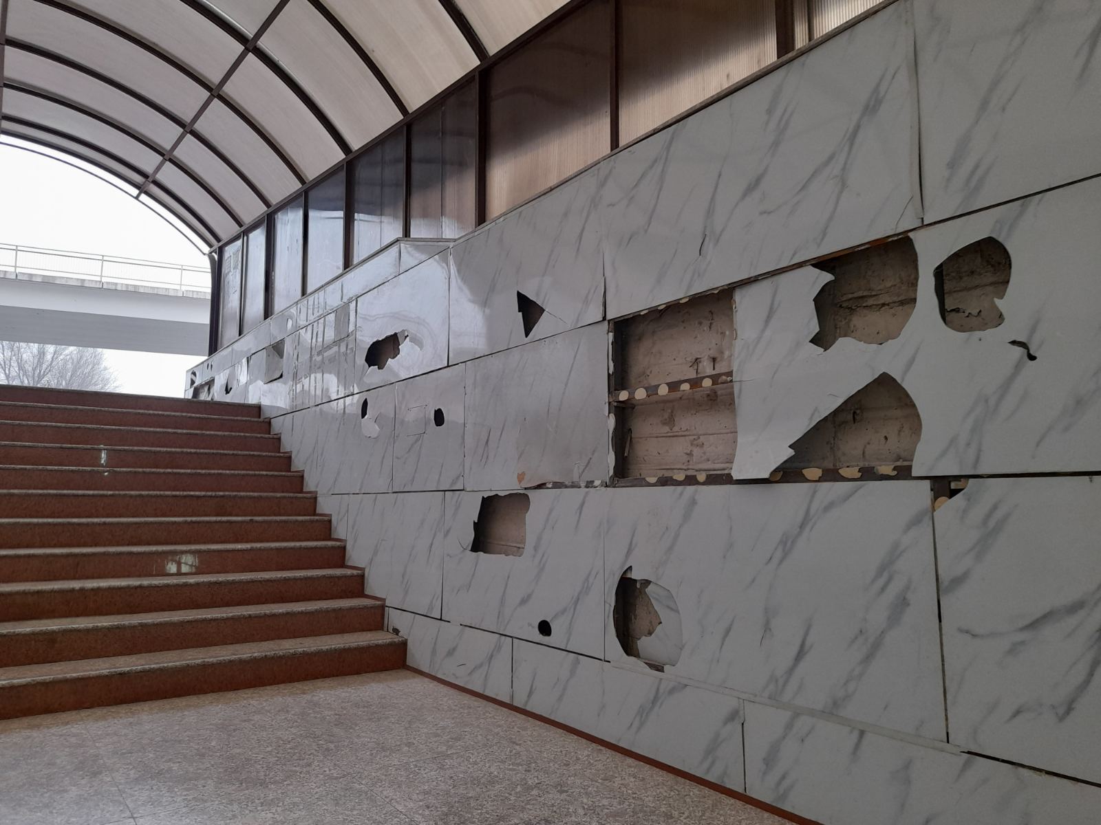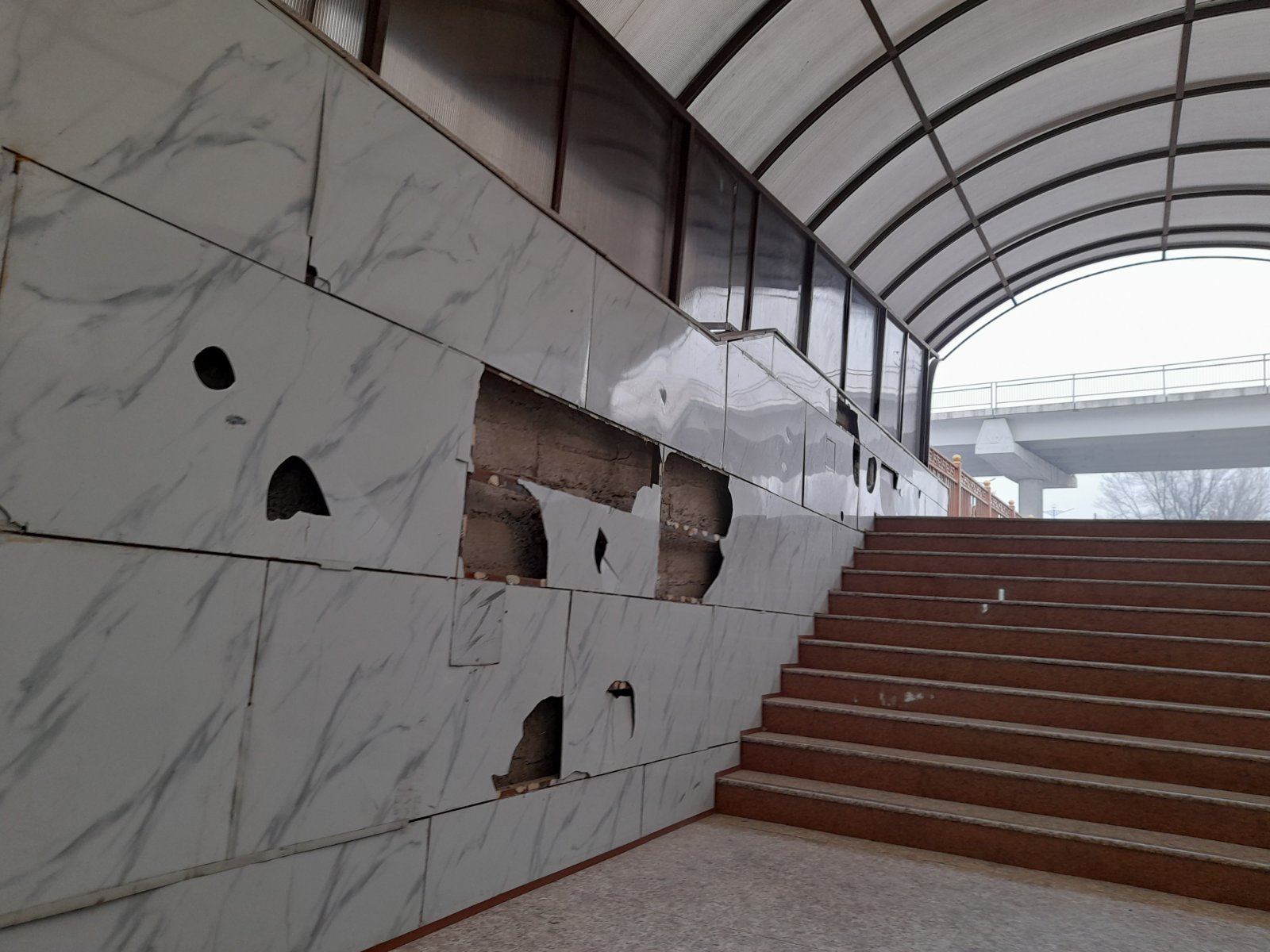 Девораҳову роҳравҳои ин гузаргоҳ ҳама шикаставу валангоранд Бархе ҷойҳоро кадом масъуле "скотч" часпондаву баъзе қисматҳои харобшударо "фанера" дарбеҳ кардаанд. Аммо дар маҷмӯъ, гузаштан аз ин гузаргоҳи харобу валангор бисёр даҳшатнок аст.