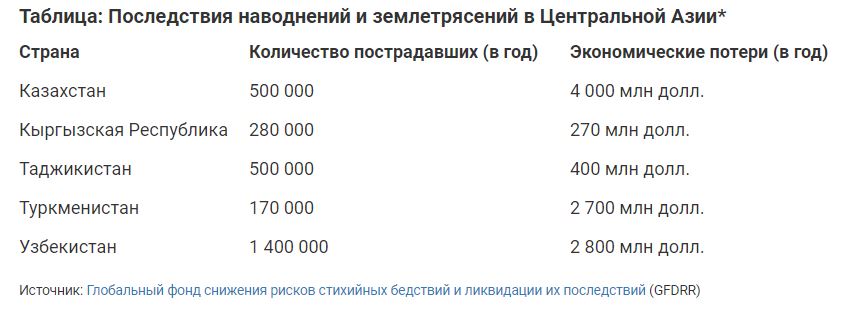 Дар мавод таъкид шуда буд, ки бар асари офатҳои табиӣ ҳамасола дар минтақа то 3 млн кас зиён мебинанд, ки нисфи онҳо дар Ӯзбекистон умр ба сар мебаранд.