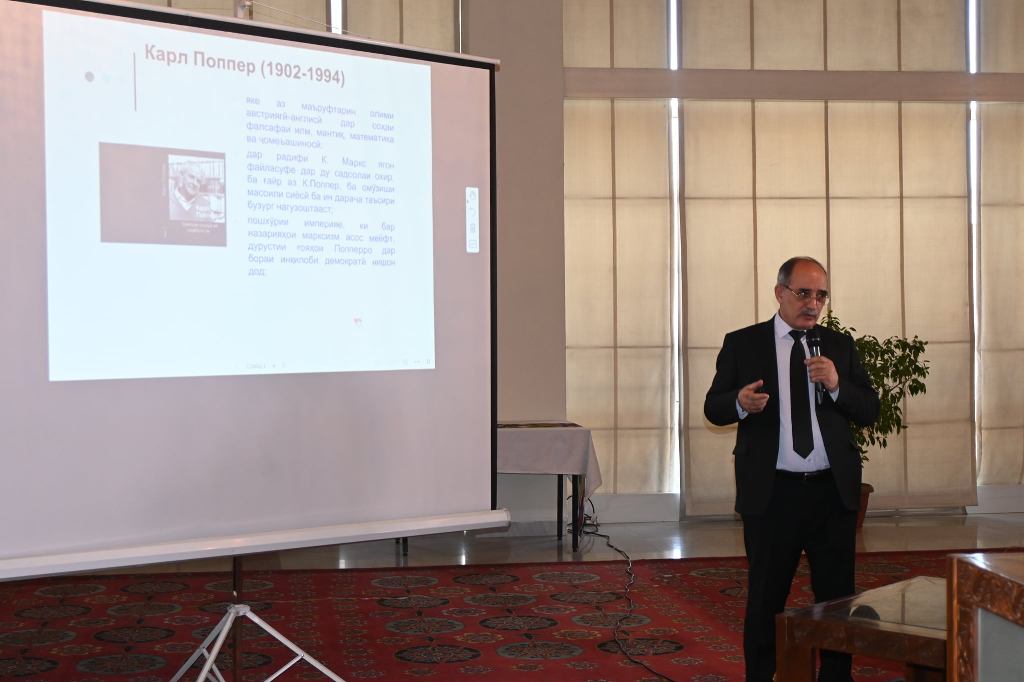 «Таълимоти «ҷомеаи кушод» – и Поппер бо тасдиқи арзиши озодии инсон ва низоми демократии ҷомеа метавонад ба пешрафти иҷтимоӣ мусоидат кунад. «Ҷамъияти кушода» дар воқеъ як модели фасеҳ аст ва метавонад бо ҷузҳои анъанавии ҳаёти иҷтимоӣ – сиёсии кишвари мо ҳамроҳ карда шавад», – таъкид кард профессор Назариев.