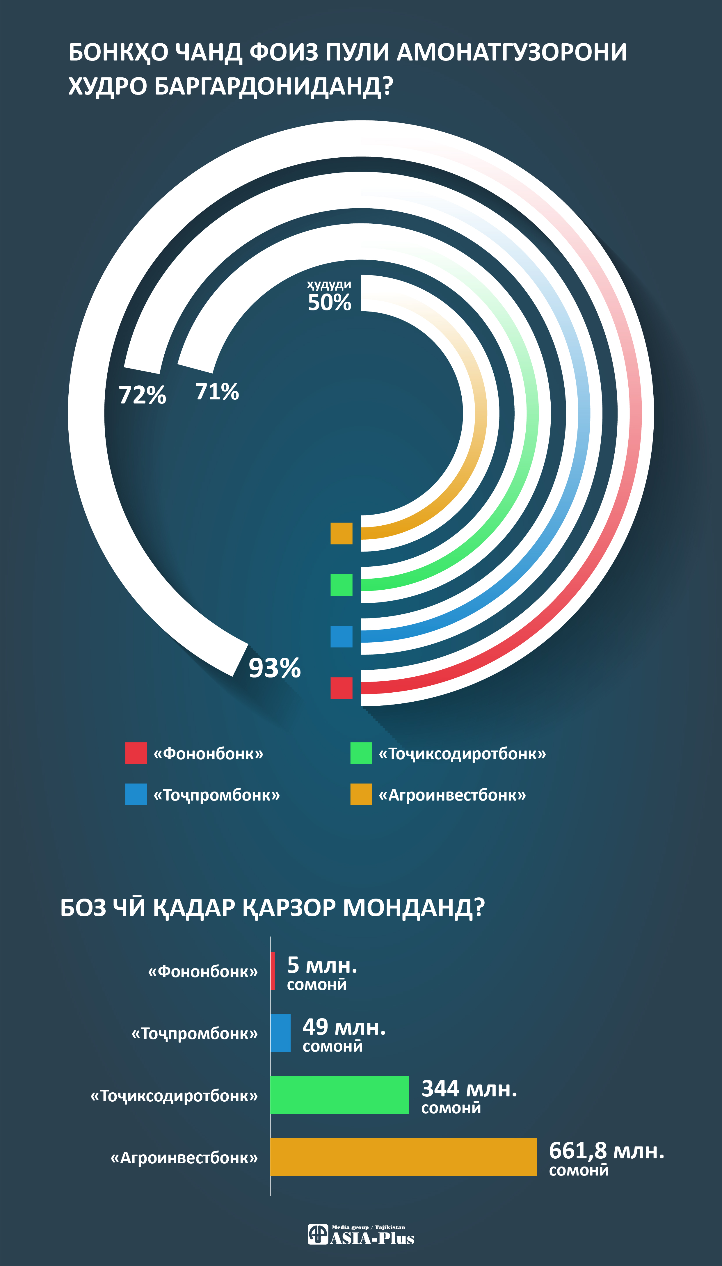 Мушкилот дар бахши бонкии Тоҷикистон аввали соли 2016 возеҳ гардиданд. Ду бонки бузург – “Агроинвестбонк” ва “Тоҷиксодиротбонк”-ро, ки он замон зиёда аз нисфи бозори бонкии кишварро дар даст доштанд, ҳукумат бо роҳи маблағгузорӣ наҷот бахшиданӣ шуда, ду бонки дигар – “Тоҷпромбонк” ва “Фононбонк” аз иҷозатномаи Бонки миллӣ маҳрум шуданд.