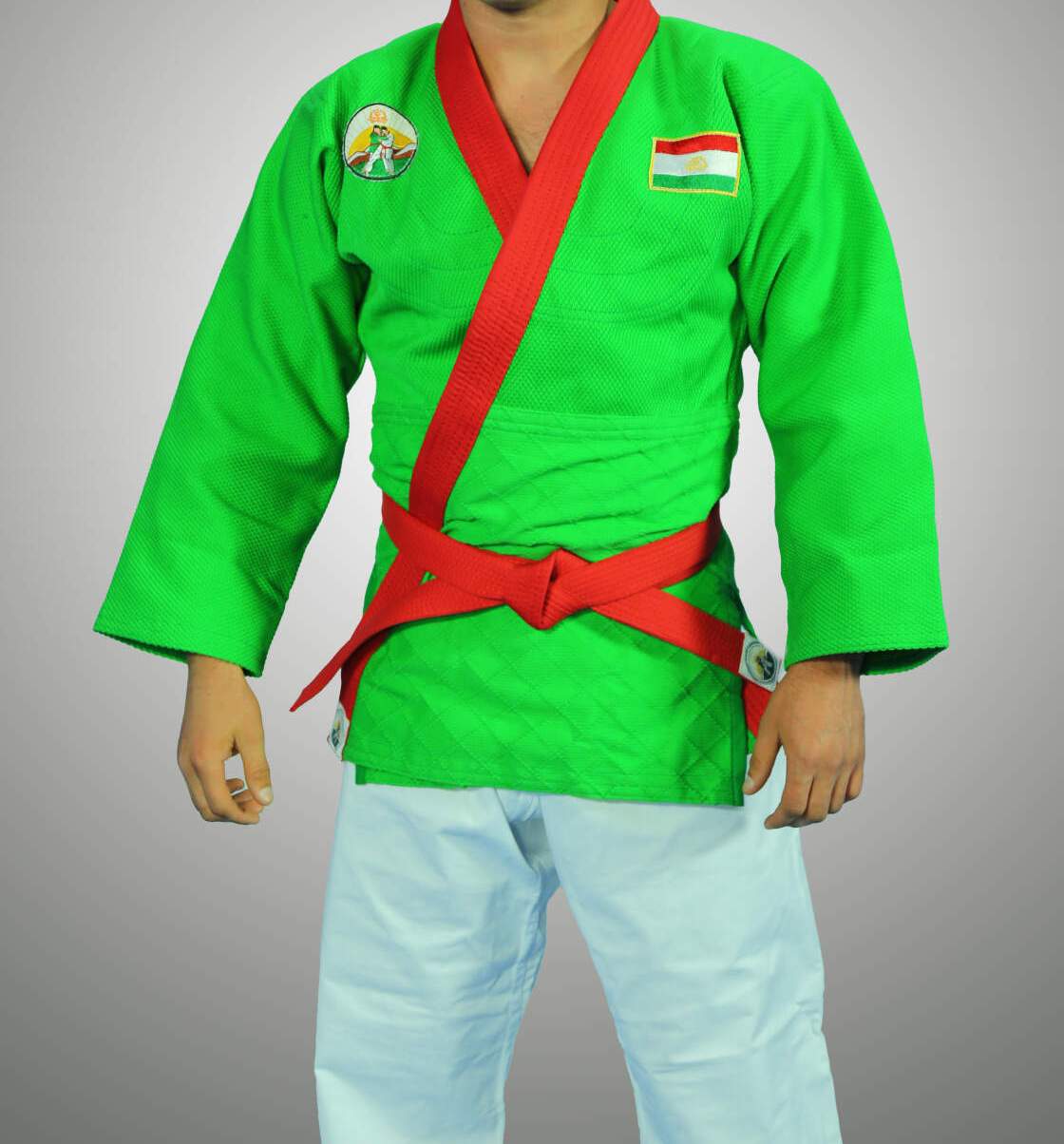 “Ҳарду варзишгар шими сафедро ба тан мекунанд. Ҷонибҳои чап ва рости пеши либос бо парчами миллӣ ва рамзи асосиии Федератсияи миллии гӯштингирӣ орро дода шудаанд. Дар пӯшти варзишгар бо харфҳои англисӣ TAJIK ҳамчун рамзи Тоҷикистон навишта шудаасту акси тоҷ ва 7 ахтар дар поёни он ҷой дода шудааст. Дар миёнбанд ва шим низ рамзи Федератсия дарҷ шудааст”,- омадааст дар шарҳе, ки федератсия ба либоси ягонаи ин навъи варзиш додааст.