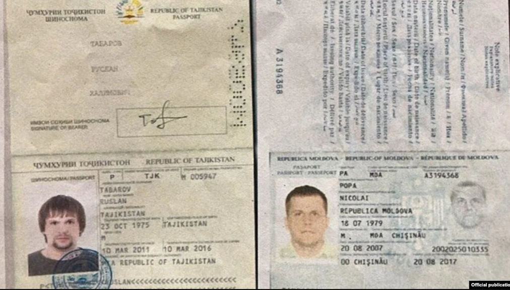 Полиси Ҷумҳурии Чех гуфт, Петров ва Боширов аз 11 то 16-уми октябри соли 2014 дар Чехия буданд ва аз шиносномаи Молдова ба номи Николай Попа (санаи таваллуд 18-уми июли соли 1979) ва аз шиносномаи Тоҷикистон ба номи Руслан Табаров (санаи таваллуд 23-юми октябри соли 1975) истифода кардаанд.