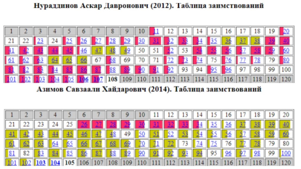 Аз ҷумла "Диссернет" дар ҷадвали иқтибосҳо нишон додааст, ки Нураддинов Аскар, 58 саҳифаи кори илмии худро ҷойе қисман ва ҷойе комилан аз рисолаи доктории роҳбари илмияш ("Предикторы нарушения устойчивости экстракардиальной регуляции сердечного ритма и внезапной смерти у больных инфарктом миокарда"), ки соли 2009 дифоъ шудааст ва 9 саҳифаи дигарро аз кори илмии Эгамқул Юлдошев ("Связь центральной регуляции и вариабельности кардиоинтервала в прогнозировании риска развития жизнеугрожащих аритмий и внезапной смерти у больных в постинфарктном периоде", 2012) рӯйбардор кардааст.
