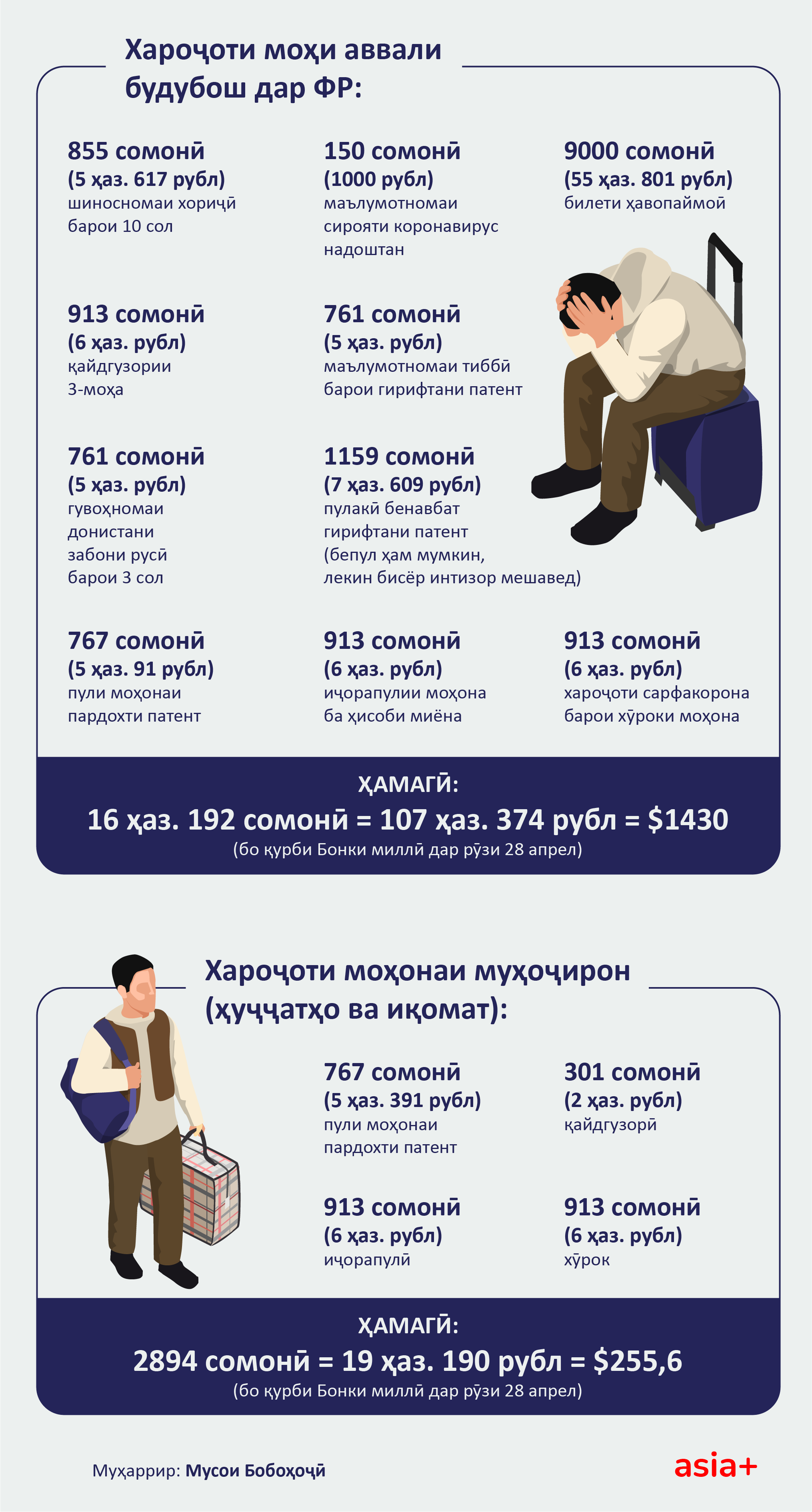 Дар инфографикаи зер дар мавриди хароҷоти сафар ба Русия – аз нарху навои билет то дастрасии ҳуҷҷатҳои гуногун – маълумот дода мешавад.