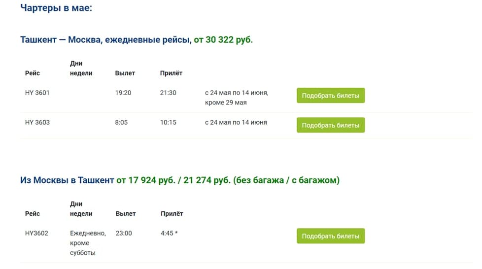 Ширкати ҳавопаймоии Uzbekistan Airways дар бораи хатсайрҳои чартерии кафолатнок ба Маскав эълон нашр кард, ки ба онҳо натанҳо шаҳрвандони Ӯзбекистон, балки Тоҷикистону Русия низ билет харида метавонанд.