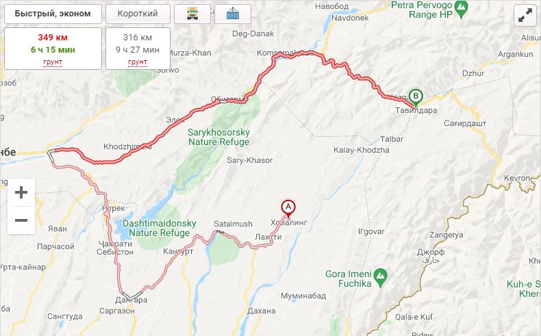 Айни замон роҳи мошингарди мустақим байни Ховалинг ва Тавилдара вуҷуд надорад. Барои бо мошин аз як ноҳия ба ноҳияи дигар рафтан ним давр тариқи Данғара, Ваҳдат, Файзобод ва Нуробод гузаштан лозим меояд. Масофаи ин роҳ бошад, ба 348 километр баробар аст.
