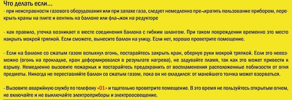 – истифодаи танҳо баллонҳои газии нав ё аз санҷиш гузашта (баллонҳоро дар 2 сол 1 маротиба санҷидан зарур аст);