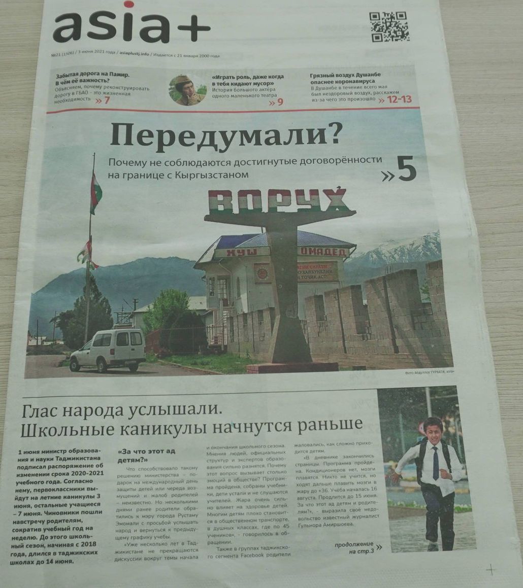Ҳафтаномаи “Asia-Plus” дар шумораи тозаи худ (№21 (1506) 3 июни соли 2021, дар матлабе ба риоя нашудани тавофуқи марзӣ миёни Тоҷикистону Қирғизистон пардохтааст