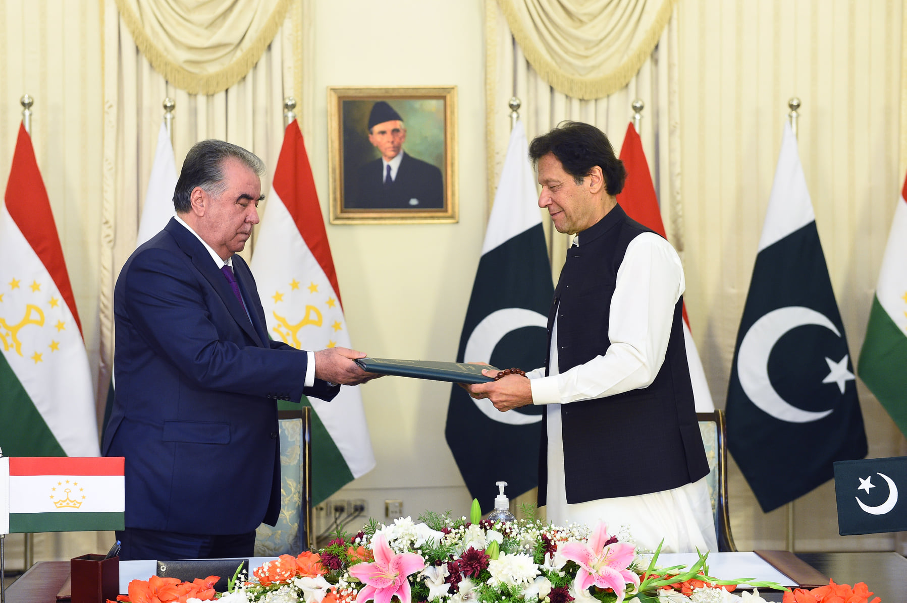 Пас аз анҷоми мулоқоту музокироти сатҳи олии Тоҷикистону Покистон дар Исломобод 2 июн дар ҳузур сарони давлатҳо Эмомалӣ Раҳмон ва Имрон Хон маросими имзои 12 санади нави ҳамкорӣ баргузор гардид.