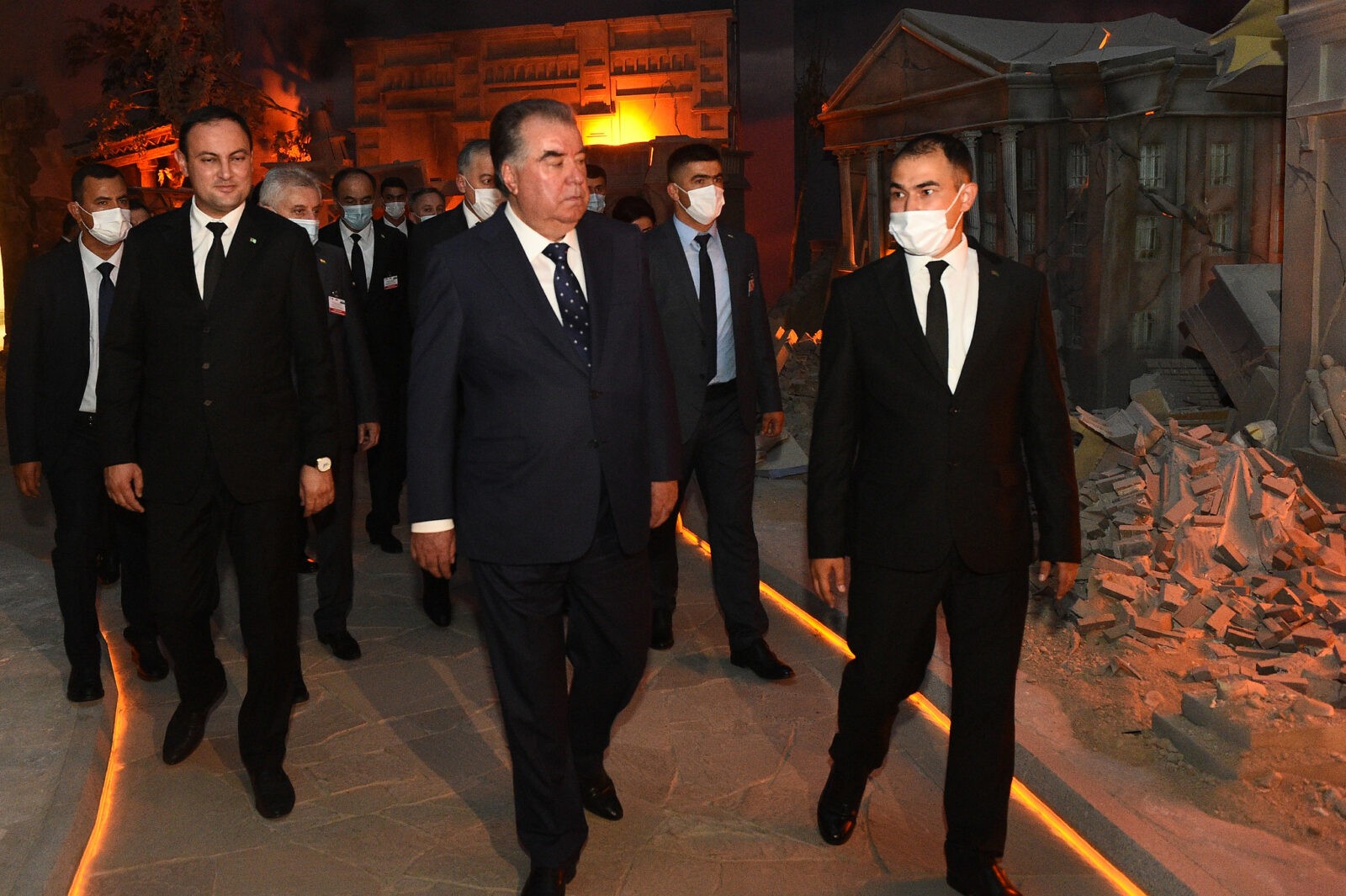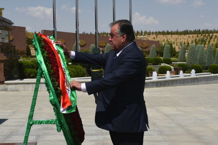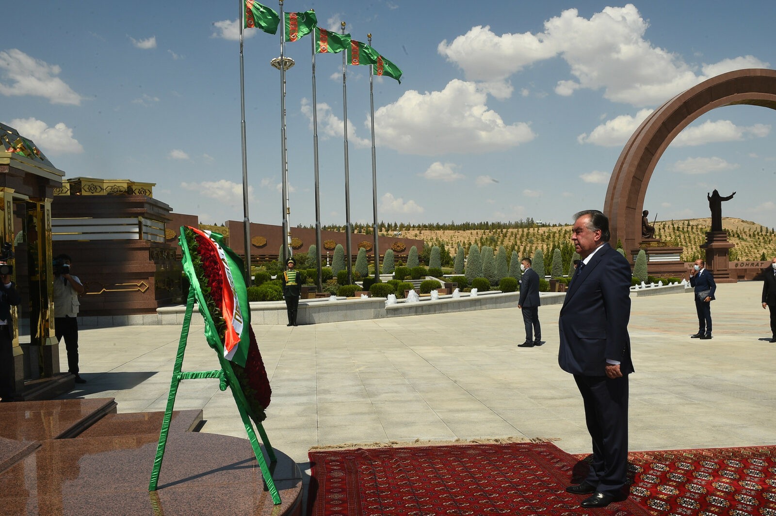 Дар майдони Маҷмааи “Ёдгории миллӣ”-и шаҳри Ашхобод Эмомалӣ Раҳмон бо арзи эҳтиром ба таъриху тамаддуни мардуми туркман, дар назди муҷассамаҳои ёдгорӣ бахшида ба муҳорибаи Гуктеппа, қурбониёни ҷанги дуюми ҷаҳон ва шаҳидони заминларза дар шаҳри Ашхобод эҳтиром ба ҷо оварда дар назди “гулхани абадӣ” гулчанбар гузошт.