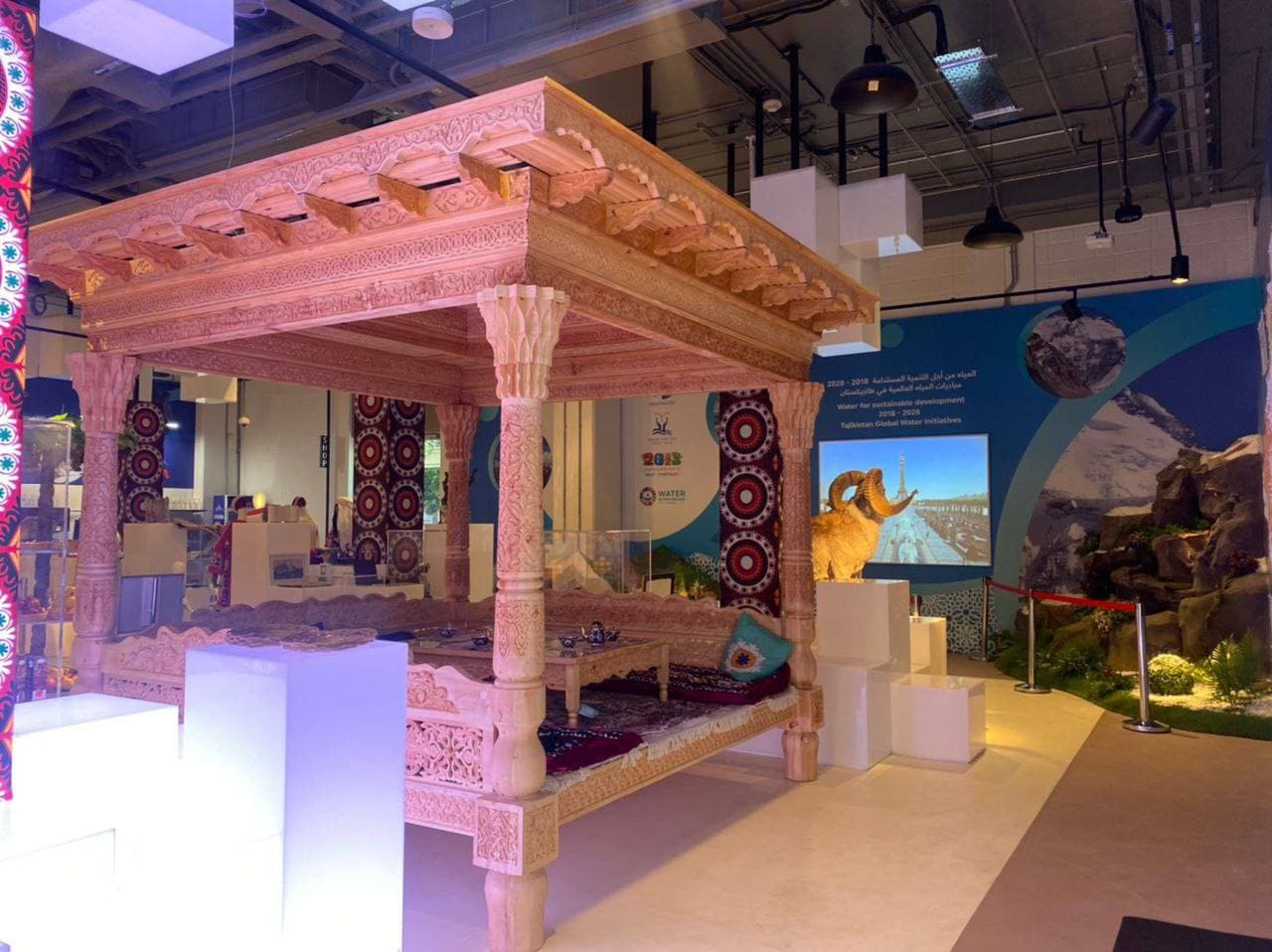 Гӯшаи Тоҷикистон дар мувофиқа бо Кумитаи тадорукоти “ЭСКПО-2020” мувофиқи мавзӯи тасдиқшуда – “Об барои рушди устувор” бо истифода аз намоиши таркибҳои меъмории миллӣ, табиати пурафсун, захираҳои обӣ, имконоти сайёҳӣ, кӯҳҳои осмонбӯс, ҳунарҳои мардумӣ сохта шудааст.