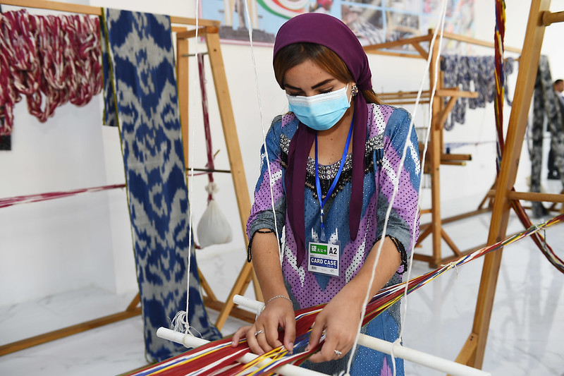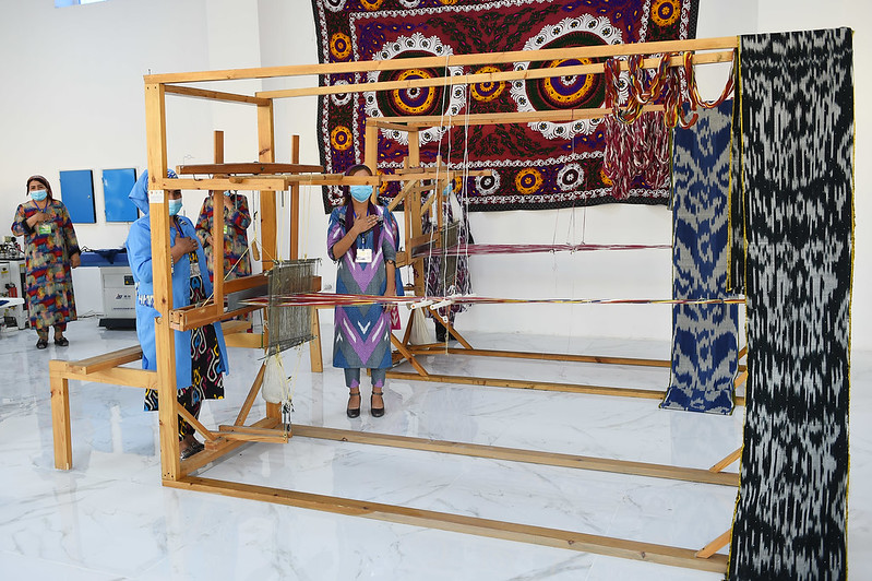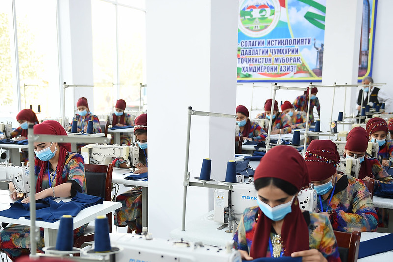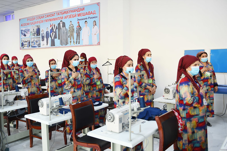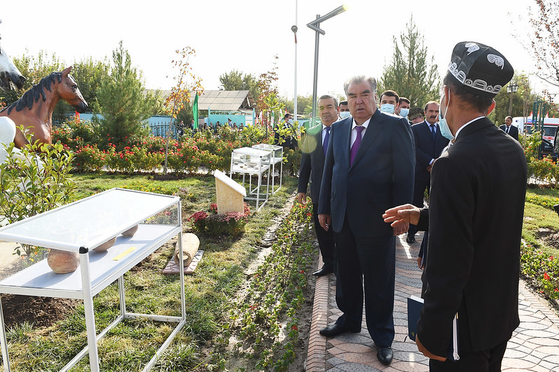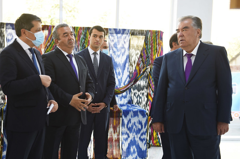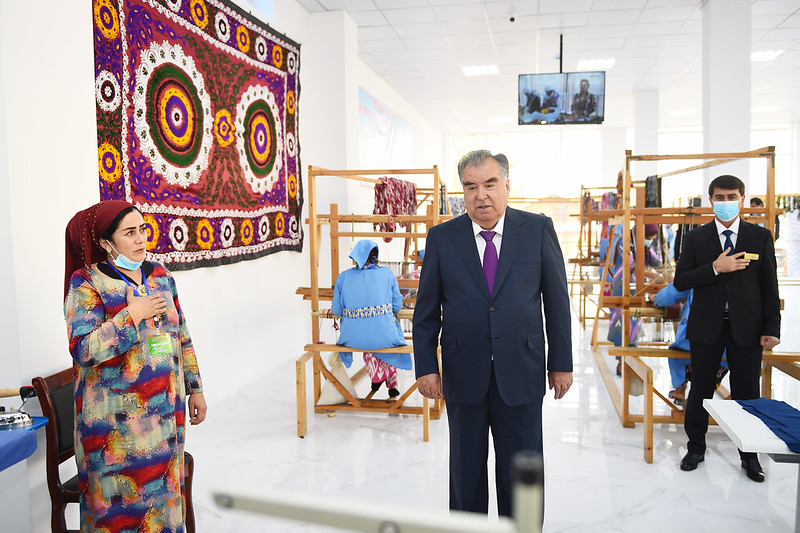 Дар деҳаи Меҳнатобод президент инчунин ба фаъоляти корхонаи дӯзандагӣ ва адрасбофӣ оғоз бахшид.