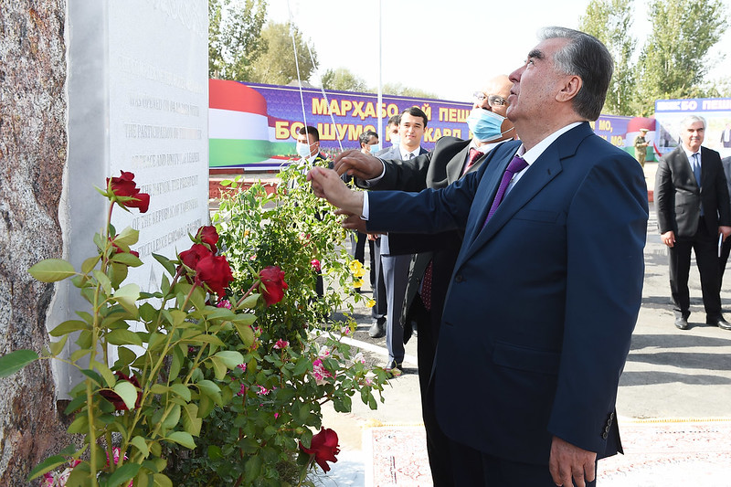 Дар деҳаи Меҳнатободи деҳоти Абуабдуллоҳи Рӯдакӣ Эмомалӣ Раҳмон майдони Парчами давлатии Тоҷикистон ва гулгаштро ифтитоҳ кард.