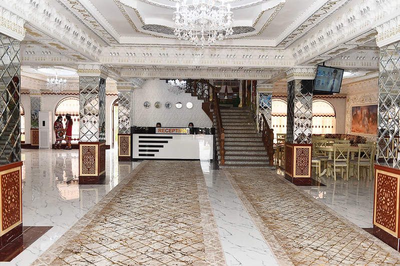 Иншооти замонавӣ аз тарафи соҳибкор Дилшод Асроров сохта шудааст. Бино аз 4 ошёна иборат буда, дар он маркази савдо, корхонаи дӯзандагию бофандагӣ, ошхона ва меҳмонхона ҷойгир мебошад.