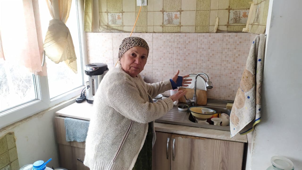 Гап сари 9 бинои панҷтабақае меравад, ки дар ин маҳал мавҷуданд. Александр Бакчук, як сокини бинои №15 мегӯяд, ду моҳ аст, барои тамоми масорифи зиндагӣ обро аз берун мекашонад.
