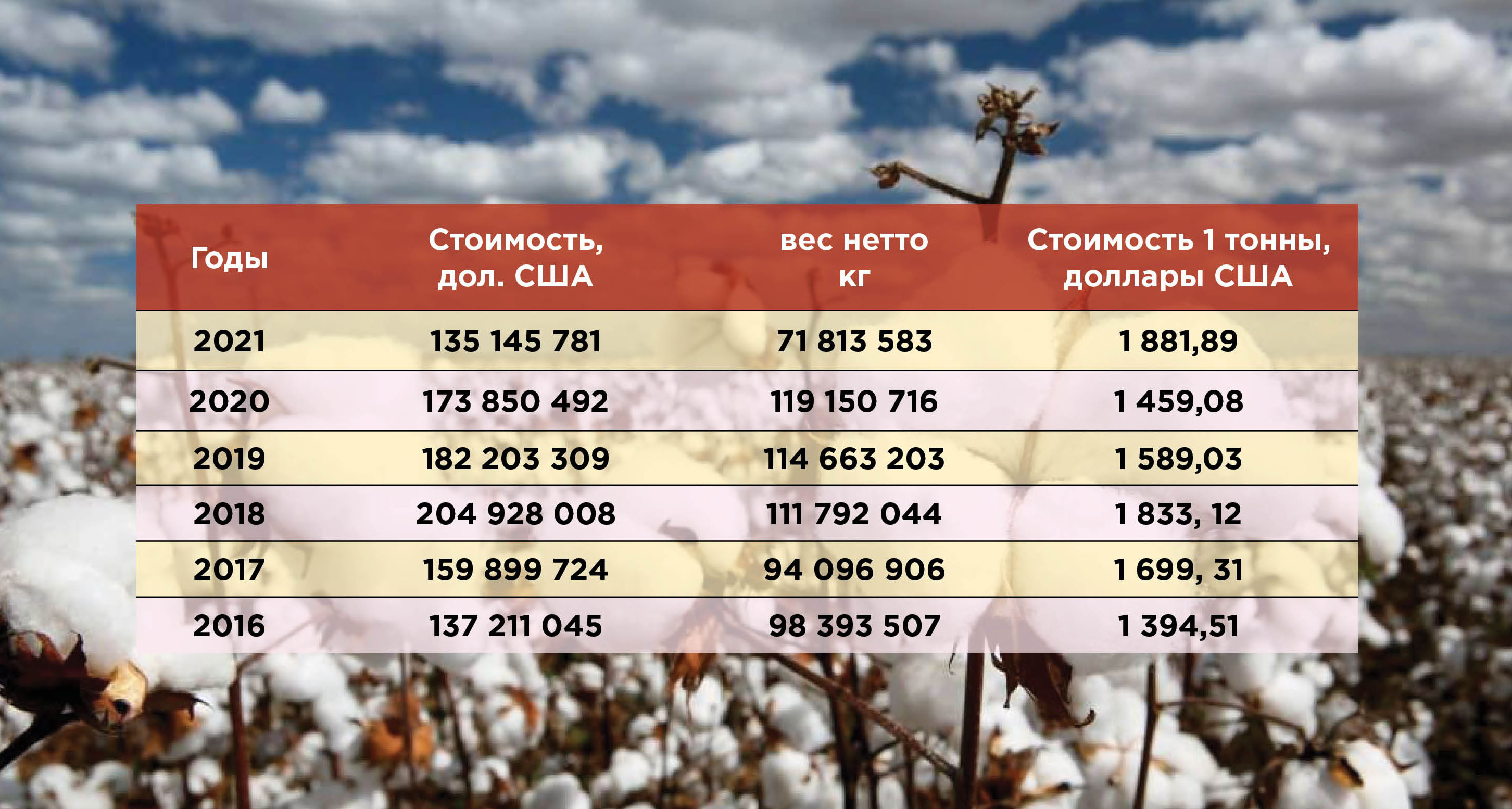 Бино ба маълумоти Хадамоти гумрук, дар зарфи 10 моҳи соли 2021 аз Тоҷикистон ба хориҷи кишвар ба маблағи 135 млн доллар ҳудуди 72 ҳазор тонна пахта содир шудааст. Агар ба назар гирифта шавад, ки ҳосилнокии нах тақрибан 40% аз ҳаҷми пахтаи хомро ташкил диҳад, пас тахмин кардан мумкин аст, ки ҳудуди 300 ҳазор тонна пахта бе коркард ба хориҷа бароварда мешавад.