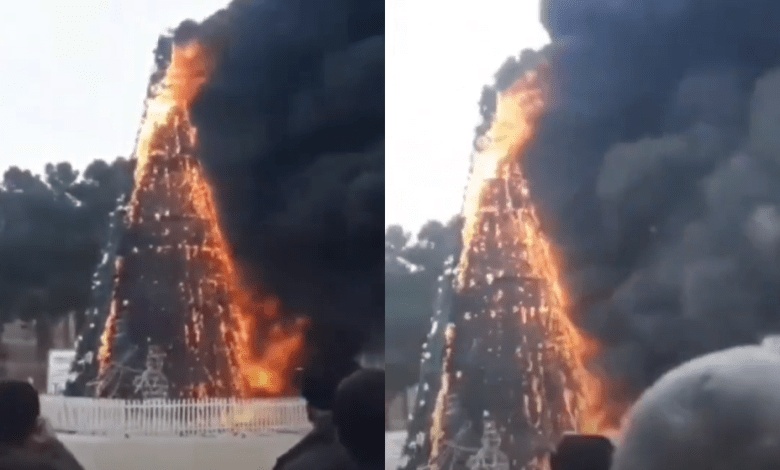 Бояд гуфт, ки баъди нашри видеои оташ гирифтани ин арчаи солинавӣ дар шабакаҳои иҷтимоӣ, бархе корбарон носанҷида онро кори дасти нафарони бунёдгаро хонданд.
