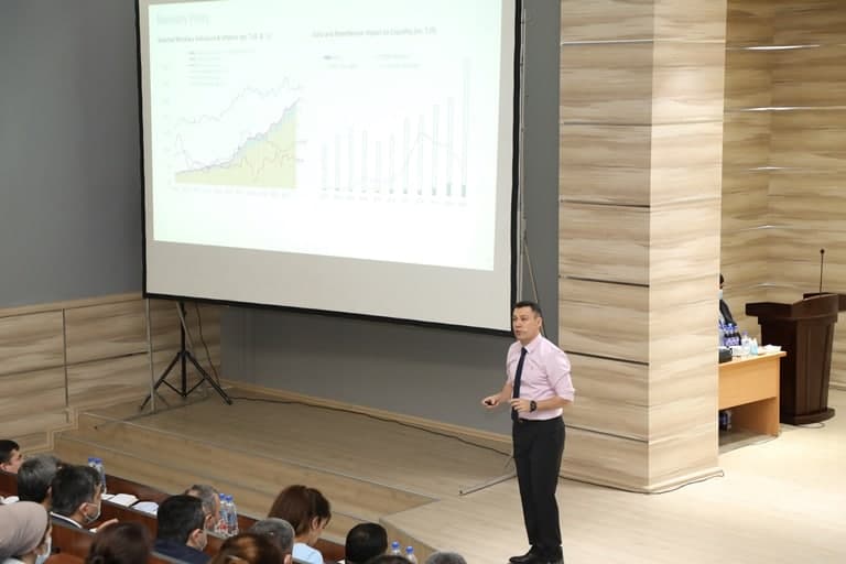 Муовини аввали раиси Бонки миллии Тоҷикистон Ҷамолиддин Нуралиев дар ҳузури профессорон, устодон, унвонҷӯён ва донишҷӯёни Донишгоҳи миллии кишвар бо рӯнамоии мавзӯи “Дигаргунсозии ниҳодии бахши бонкӣ дар Тоҷикистон дар шароити мураккаби иқтисодӣ. Барқарорсозии эътимоднокӣ ва боварӣ” маърӯза кард.