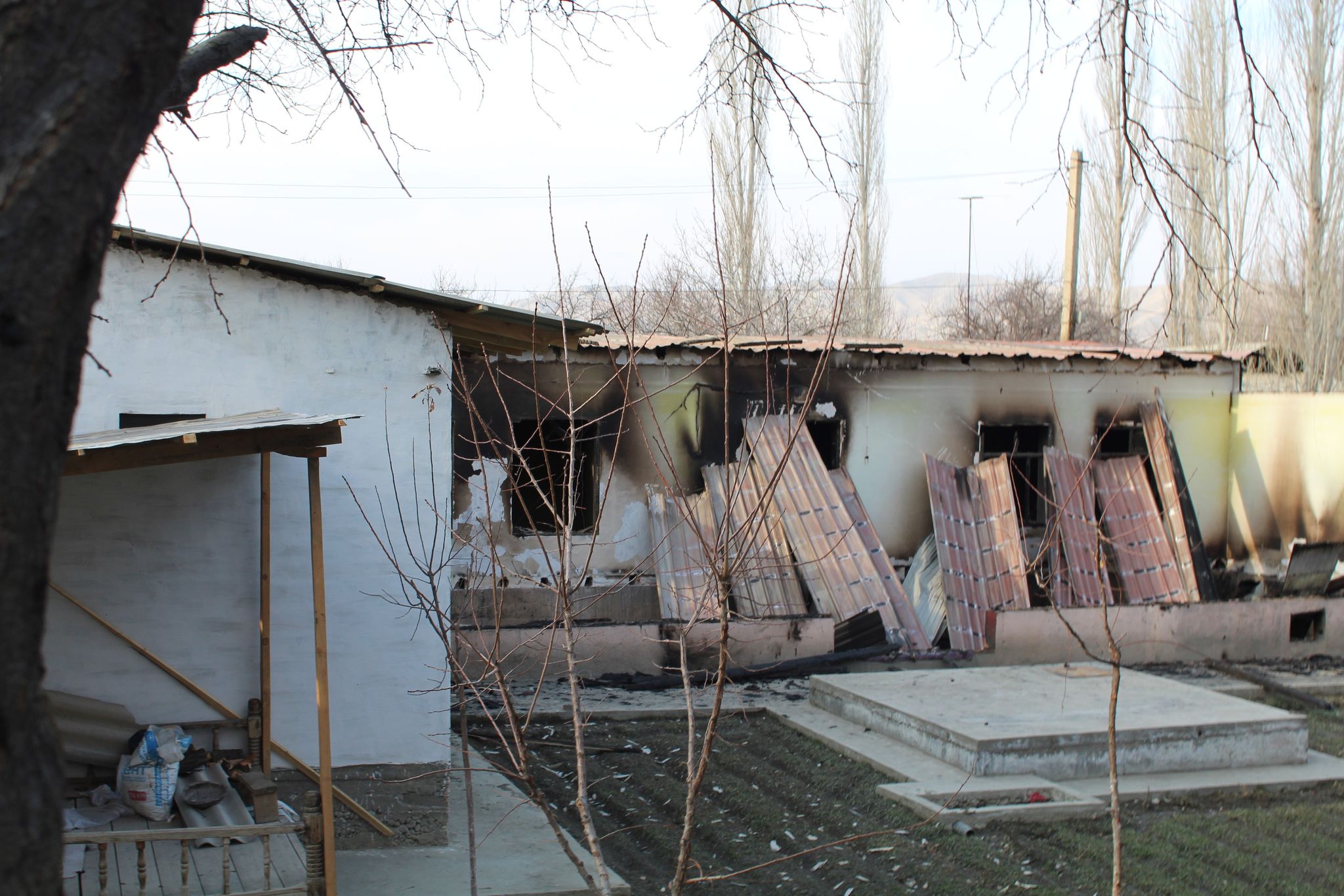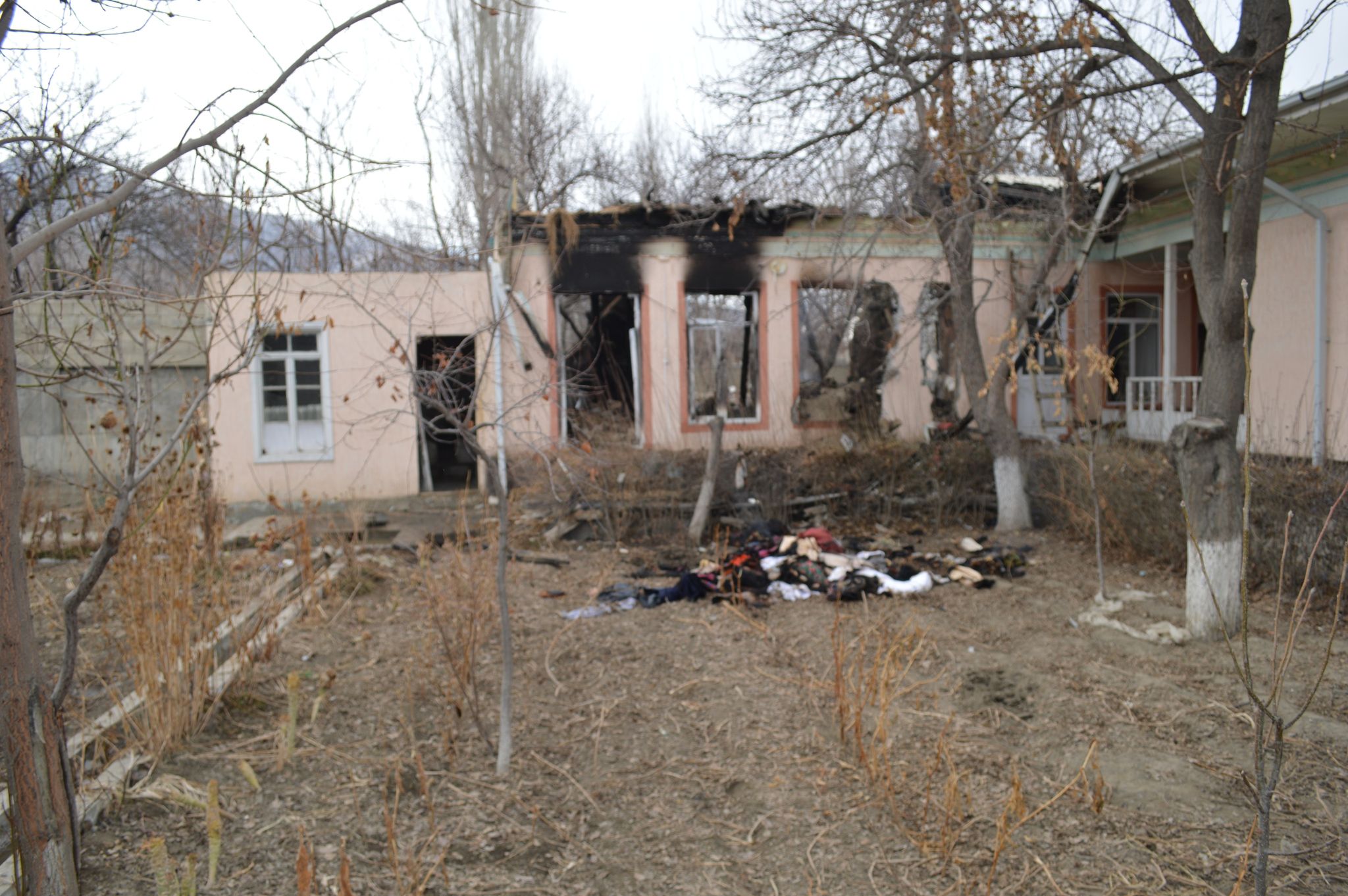 Яке хонаҳои комилан дар коми оташ монда ба Фарҳод Бобоев таъаллуқ дорад. Хонаи ин сокини деҳаи Сомониён, ки наздик ба хонаи қирғизҳо ҷойгир аст, бори дуюм аст, ки пурра тахриб мешавад. Дар муноқишаи охири моҳи апрели соли гузашта низ хонаи ӯро ҷониби қирғизҳо оташ зада буданд ва моҳи июли ҳамон сол бо кӯмаки мақомот пурра барқарор гашта буд.