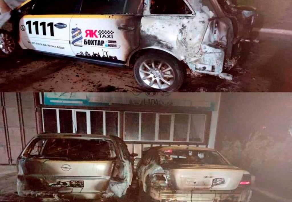 “Он шаб ду автомашинаи таксии Opel Zafira ва Opel Vectra-и мутааллиқ ба сокини ноҳияи Кӯшониён Акмал Абдураҳимов ва сокини ноҳияи Вахш Умед Юсупов оташ зада шуд”, – зикр мешавад дар хабари ВКД.