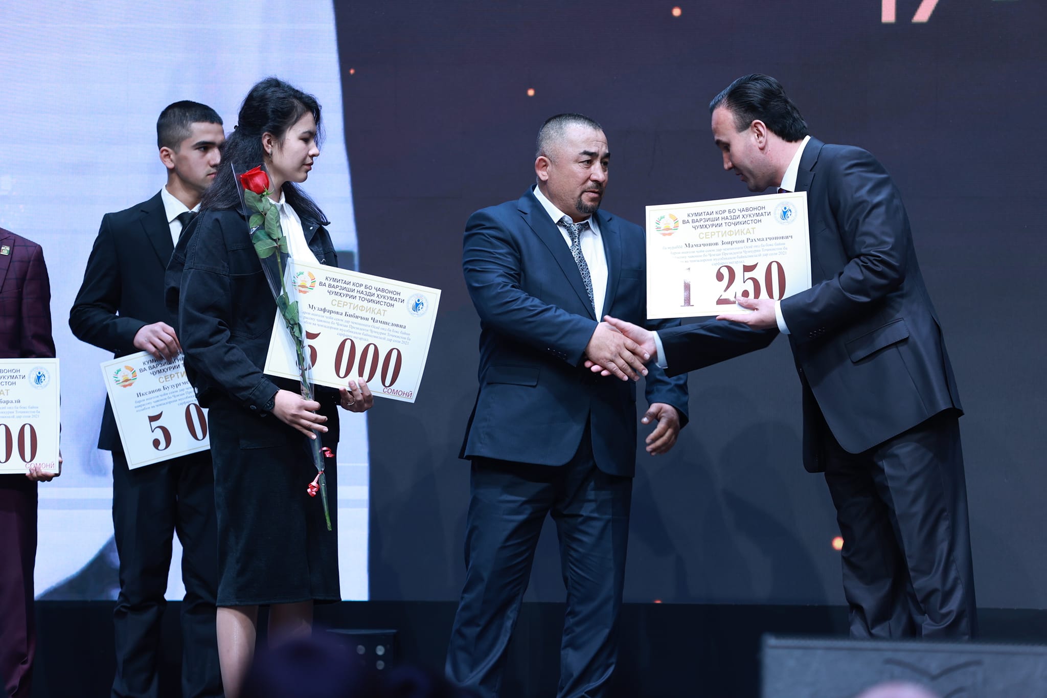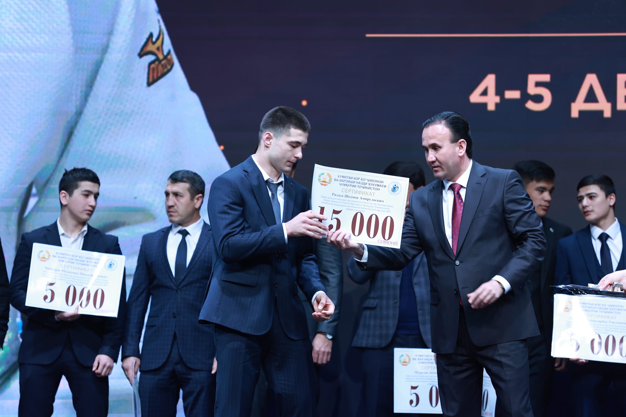 Дар маросими ҷоизасупорӣ, варзишгароне чун Шоира Зулқайнарова, Миҷгона Самадова, Дурандеш Зубайдов, Руслан Ғафуров, Шаҳбоз Дадаҷонов, Акбаралӣ Абдураҳмонзода, Бузургмеҳр Исканов, Анушервон Фозилов, Бибиҷон Музаффарова, Муҳаммад Ҷабборов, Юсуф Фозилов, Абдураҳим Ёқубов, Абубакр Муродов, Акмалҷон Абдуллоев, Эрматов Нурланбек, Сироҷиддин Ҳоҷибобоев, Рустами Исканбек, Шодмон Ризоев, Муҳаммадҷон Абдуҷалилзода, Парвиз Абдураҳмонов, Давлатҷон Назриев, Масъуди Аҳмадзод, Муҳаммад Юсуфзода, Абубакр Шеров, Далер Ризозода ва Суруш Эркаев ҳамроҳи мураббиёни худ барои пирӯзӣ ва бурдани ҷоизаҳои мусобиқаҳои байналмилалӣ дар соли 2021 сазовори Ҷоизаи президенти Тоҷикистон дар соли 2021 гардиданд.