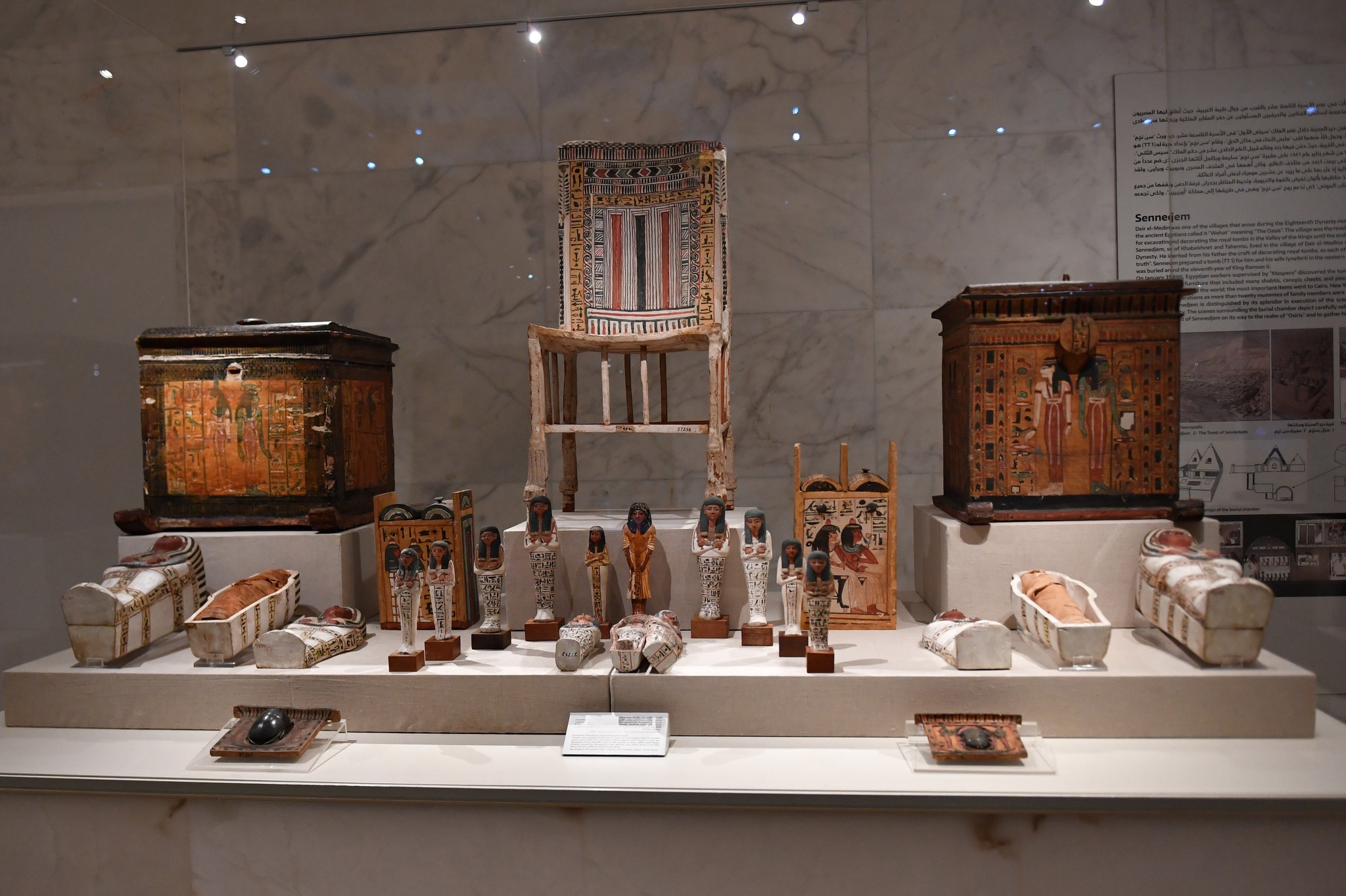 Нигораҳои осорхона дар 9 толор, аз ҷумла як намоишгоҳи асосии доимӣ оид ба муҳимтарин дастовардҳои тамаддуни Миср, бо шаш намоишгоҳи мавзӯӣ аз қабили “Субҳи тамаддун”, “Дарёи Нил”, “Навиштаҷот”, “Давлат ва ҷомеа”, “Фарҳанг”, “Эътиқод ва ғояҳо” ва намоишгоҳи мумиҳои подшоҳӣ ҷойгир шудааст.