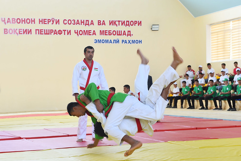 Дар идома бо ҳузури президент маросими ифтитоҳи Қасри варзишии “Паҳлавонони суғдӣ” баргузор шуд. Он аз ҳисоби маблағҳои буҷети вилояти Суғд сохта шудааст. Масоҳати иншоот 960 метри мураббаъ буда, толори варзишӣ дорои 300 ҷойи нишаст мебошад.