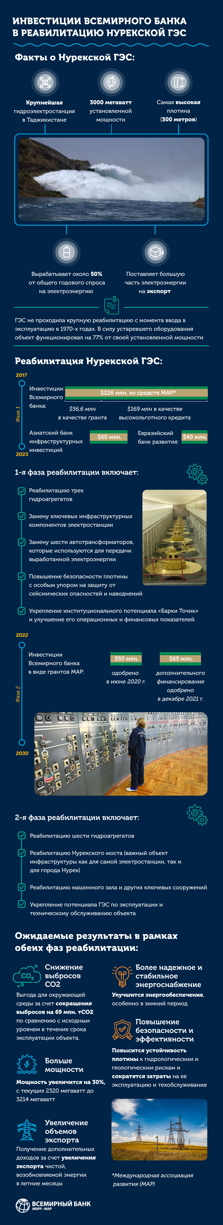 Тоҷикистон ва Бонки ҷаҳонӣ Созишнома оид ба маблағгузории Лоиҳаи барқарорсозии Неругоҳи барқи обии «Норак», марҳилаи II-ро бо арзиши 65 млн доллар (бар асоси грант) ба имзо расониданд.