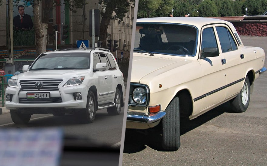 Байни автомашинаҳои хидматӣ бо тамғаҳои гаронбаҳои хориҷӣ – Toyota Land Cruiser, Lexux, KIA, Toyota ва ғайра дучор шудан мумкин аст. Арзиши онҳо дар бозор аз 8 то 30 ҳазор долларро ташкил медиҳад. То ҳол байни онҳо баъзан тамғаҳои замони шӯравӣ – ГАЗ-24 «Волга», ВАЗ-2101 «Жигули» ва ғайраро ҳам дидан имкон дорад.